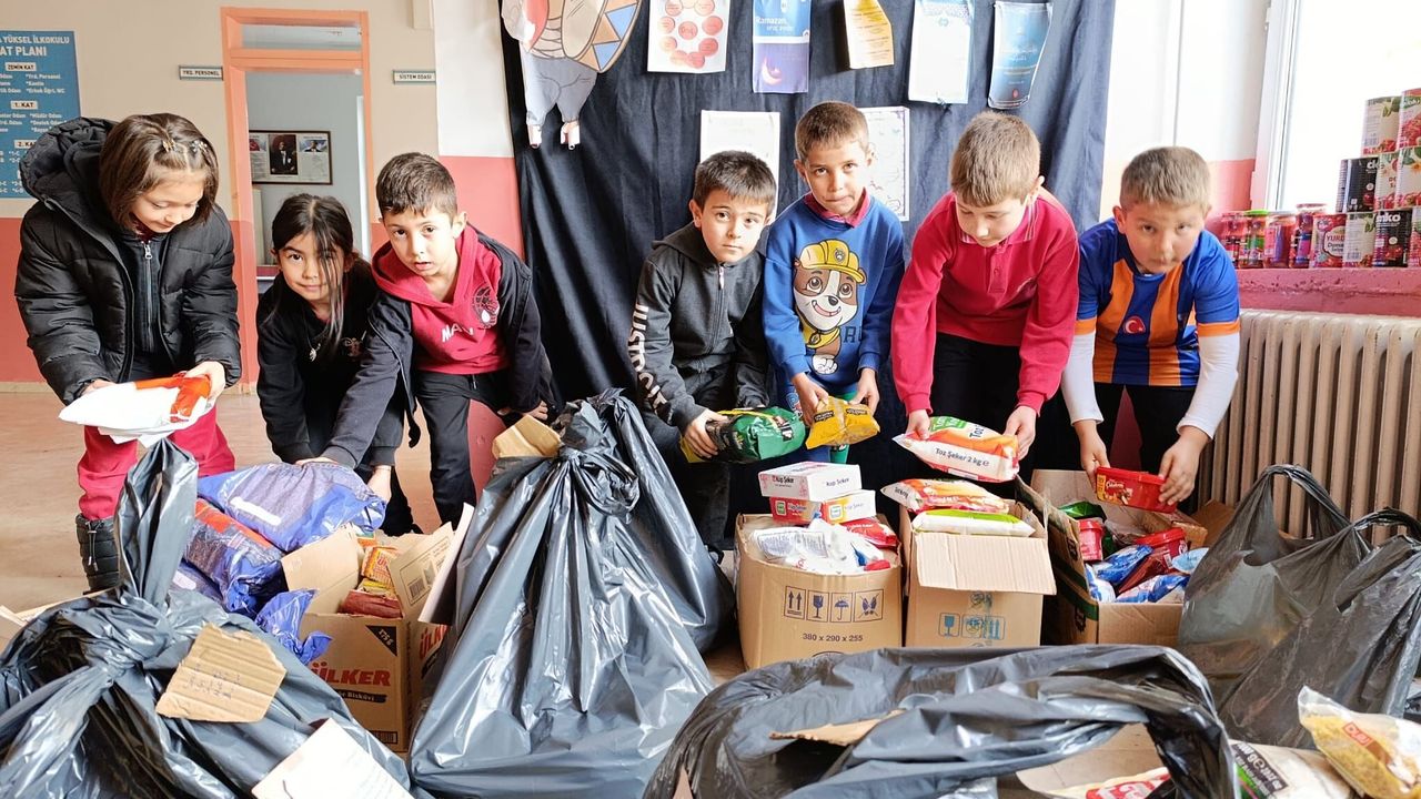 Şehit Şahin Abanoz Ortaokulu ile Mustafa Yüksel İlkokulu öğrencileri, okul aile birliği öncülüğünde gıda ve giyim malzemelerinden oluşan paketler hazırladı.