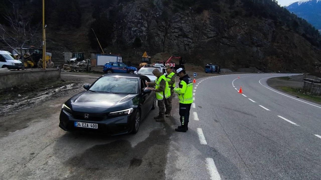 Ramazan Bayramı tatili dolayısıyla yol kontrol ve denetimlerini sıkılaştıran Gümüşhane İl Jandarma Komutanlığı Trafik Timleri, uygulama noktalarında durdurulan sürücülere ceza yerine şeker ve kolonya ikram edilerek bayramları kutlandı. Gümüşhane genelinde huzurlu ve güvenli bir bayram trafiği sağlamak amacıyla harekete geçen Trafik Jandarması ekipleri, stratejik noktalarda denetim gerçekleştirdi. Denetimlerin odağında sadece kurallar değil, aynı zamanda bayramın getirdiği hoşgörü ve nezaket vardı.