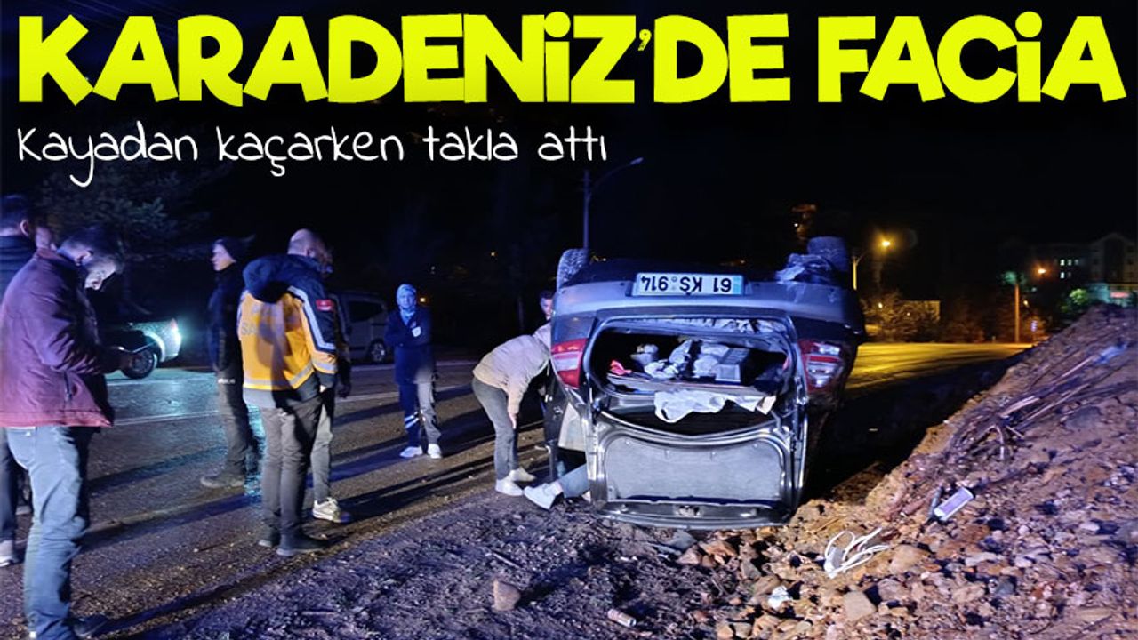 Gümüşhane-Trabzon yolunda kaza: Kayalardan kaçmak isterken takla attı
