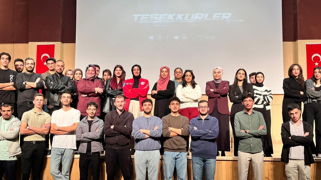 Etkinlikte, TEKNOFEST ve Türkiye Teknoloji Takımı (T3 Vakfı)’nın faaliyetleri tanıtılarak öğrencilere proje ekosistemine dahil olma yolları aktarıldı. Fatma Nur Tip, TEKNOFEST süreci hakkında detaylı bilgiler paylaştı, geçmiş yıllarda başarı elde eden projelerden örnekler verdi ve öğrencilere yol gösterici öneriler sundu.