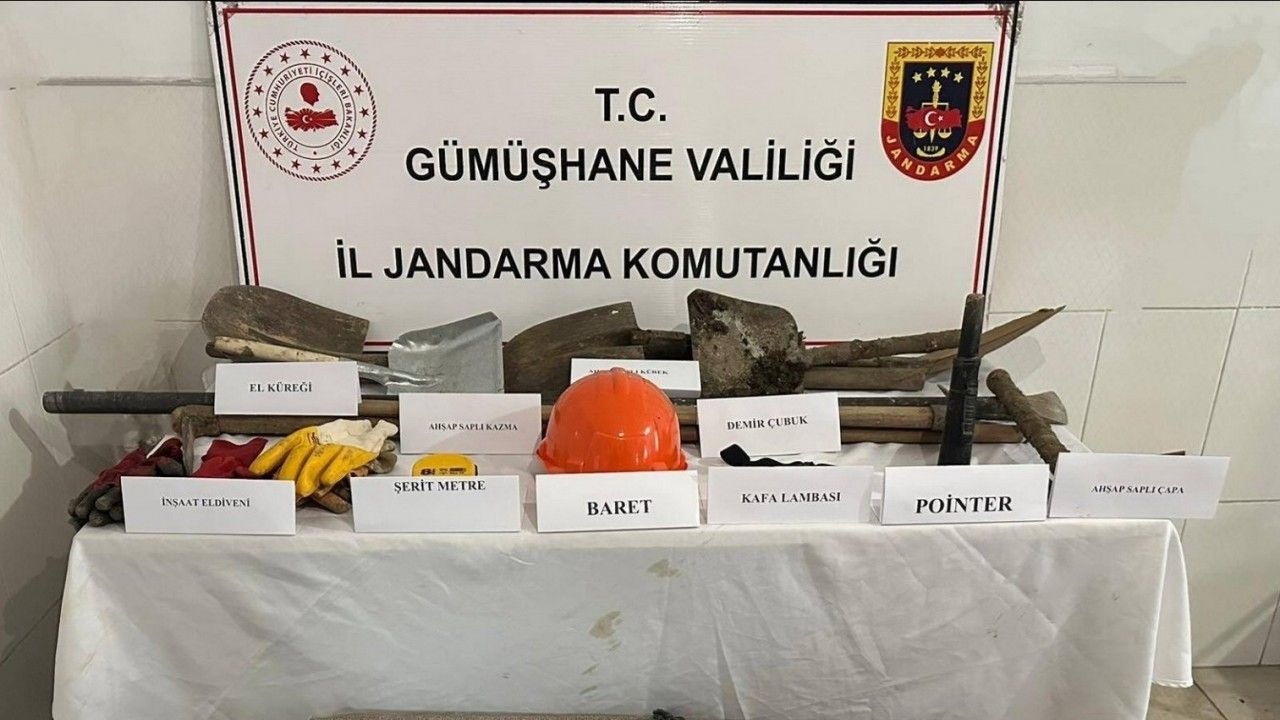 Edinilen bilgiye göre, Gümüşhane İl Jandarma Komutanlığı Kaçakçılık ve Organize Suçlarla Mücadele Şube Müdürlüğü (KOM) ile Torul İlçe Jandarma Komutanlığı ekipleri, Atalar köyünde 4 şüphelinin izinsiz kazı yaptığı bilgisine ulaştı. Bölgeye yapılan operasyonda C.H., O.İ., S.Ş. ve A.Ü. isimli şahıslar 1 adet alan tarama cihazı, 2 adet kazma, 3 adet kürek, 2 adet demir çubuk, 1 adet ahşap saplı çapa, 2 adet el küreği, 3 çift inşaat eldiveni, 1 adet kafa lambası, 4 adet kova, 1 adet baret, 4 adet kum çuvalı, 3 metre halı ve 8 metrelik şerit metreyle birlikte suçüstü yakalandı.