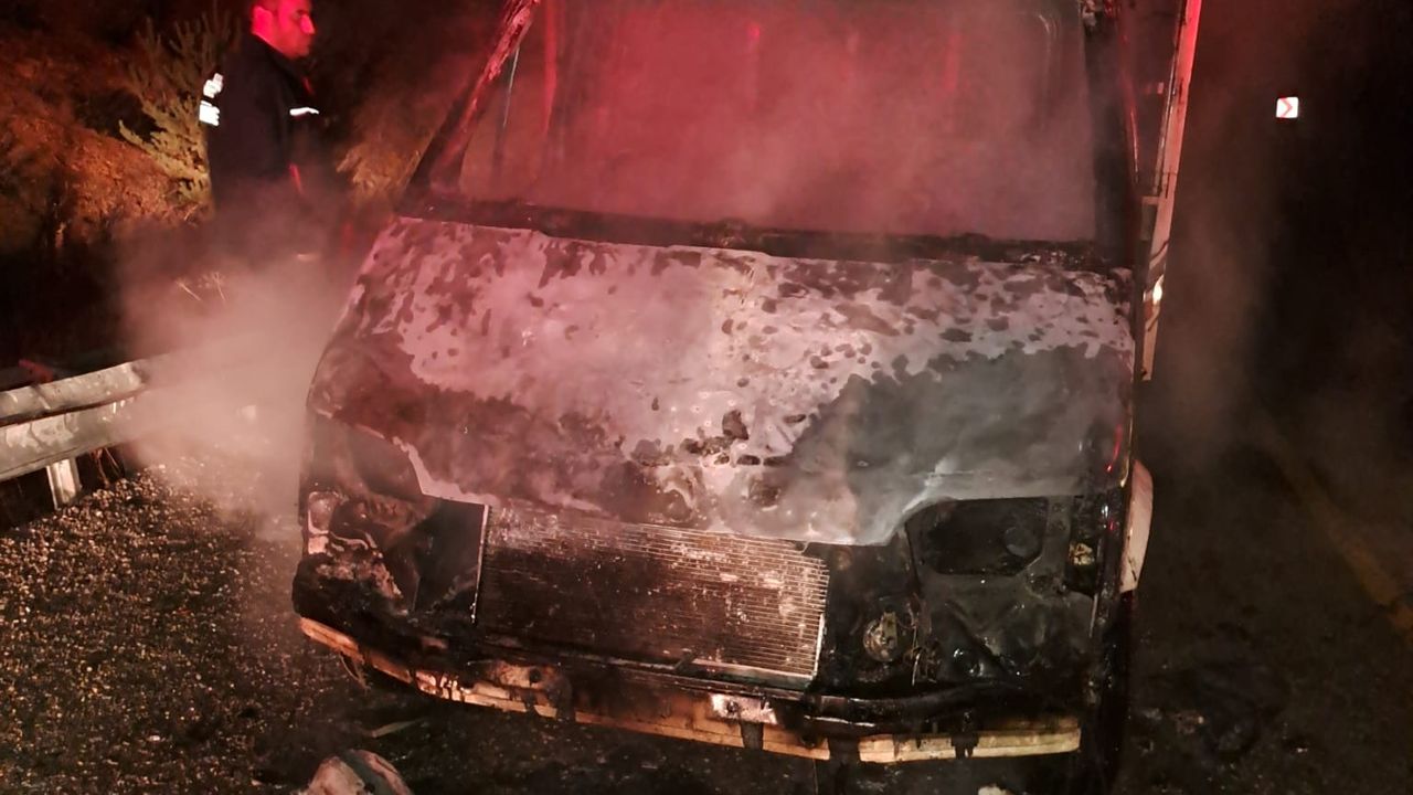 Ekiplerin müdahalesiyle söndürülen yangında, kamyonet kullanılamaz hale geldi.