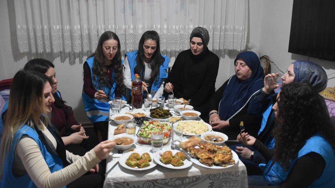 Bu kapsamda Zeynep Ana Kız Öğrenci Yurdu'nda kalan bir grup öğrenci, 64 yaşındaki Hülya Yanak'ı evinde ziyaret etti.