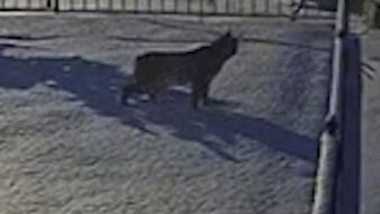 Çevrede yiyecek arayan vaşak, güvenlik kamerasınca kayda alındı.