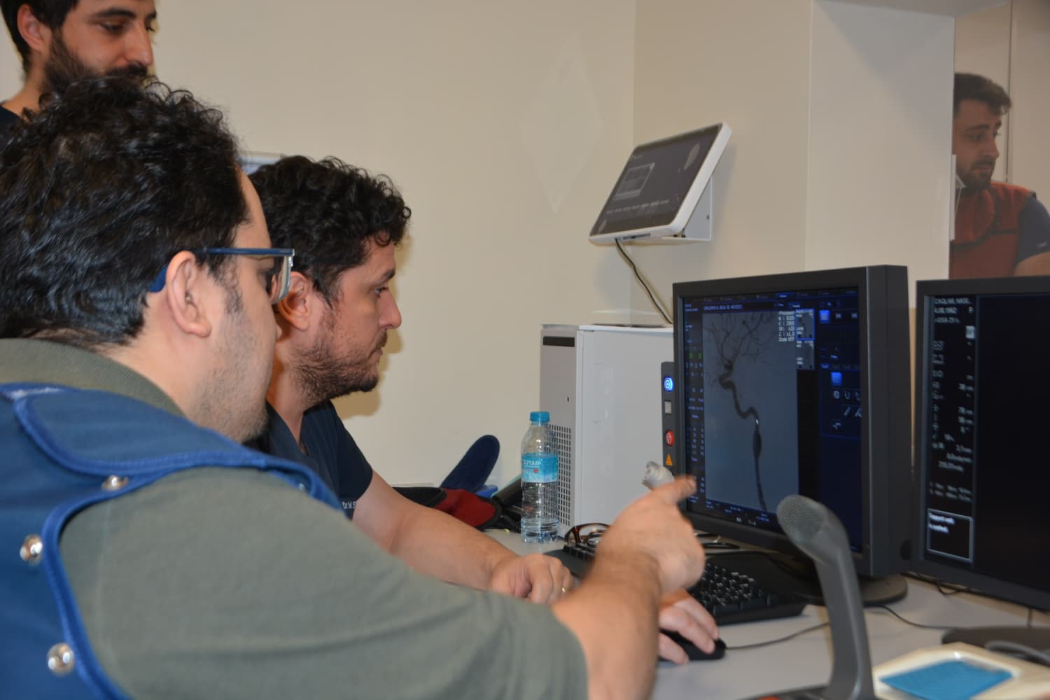 Hastanın ilk değerlendirmesi Nöroloji Kliniği tarafından yapıldı ve gerekli tetkiklerin ardından Beyin ve Sinir Cerrahisi Kliniğine sevk edildi. Yapılan görüntülemelerde anevrizmanın ICA Petroz Segment Anevrizması olduğu tespit edildi. Bunun üzerine Beyin ve Sinir Cerrahisi Uzmanı Dr. Öğr. Üyesi Mehmet Selim Gel ve Op. Dr. Hasan Çağrı Postuk tarafından ileri girişimsel tedavi planlandı. Multidisipliner ekibin hızlı koordinasyonuyla hastanın acil müdahale edilmesine karar verildi.