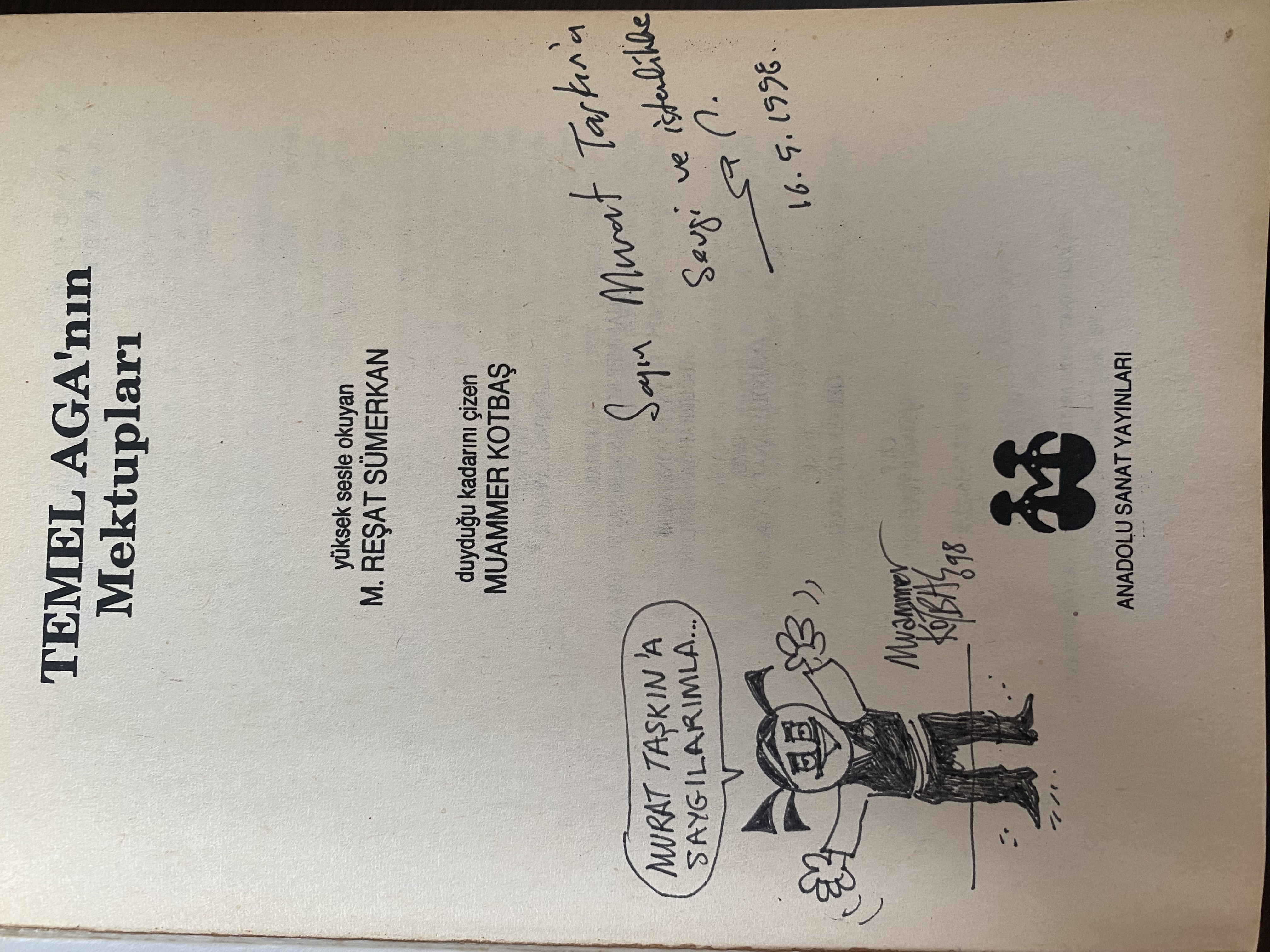 Anadolu Sanat Yayınları’ndan 1997 baskısı M. Reşat Sümerkan’ın “Temel Aga’nın Mektupları.”