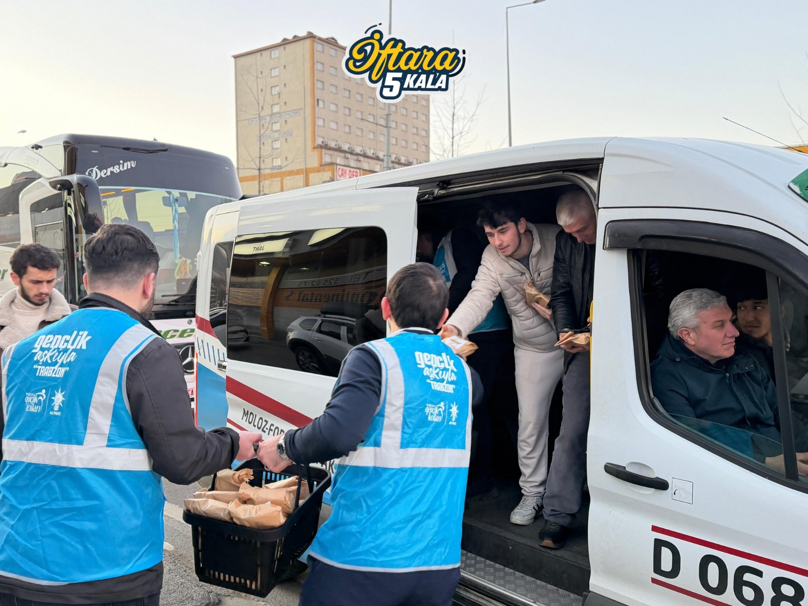 AK Parti Trabzon İl Gençlik Kolları Başkanı Mahmut Çavuş, ekibiyle iftara yetişemeyenlerin imdadına yetişiyor. Sanayi Mahallesi Maçka kavşağında teyakkuza geçen AK gençler, yolda olan vatandaşlara iftariyelik ikram etti. Gençlik Kolları Başkanı Mahmut Çavuş, "AK Gençlik her daim sahada. İftara yetişemeyenlere biz yetişiyoruz. Siz iftara yetişemezseniz AK Gençlik size yetişir" dedi.