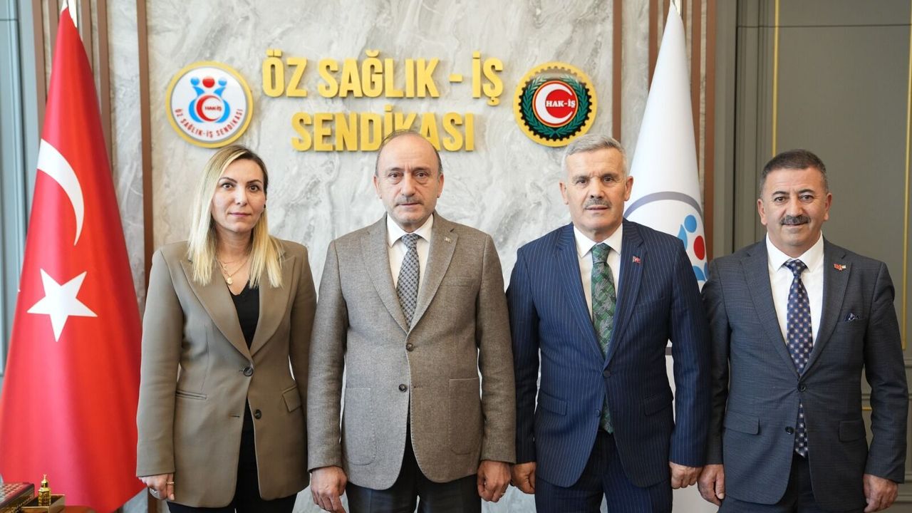 Öz Sağlık-İş Sendikası Genel Merkezi’nde gerçekleşen toplantı, sıcak ve samimi bir atmosferde yapıldı. Görüşmede, sendikanın mevcut çalışmaları ve geleceğe yönelik hedefleri üzerine kapsamlı değerlendirmelerde bulunuldu.