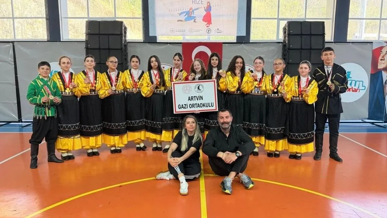 Artvin’i okul sporlarında başarıyla temsil eden Gazi Ortaokulu Halkoyunları ekibi, önemli bir başarıya daha imza attı.