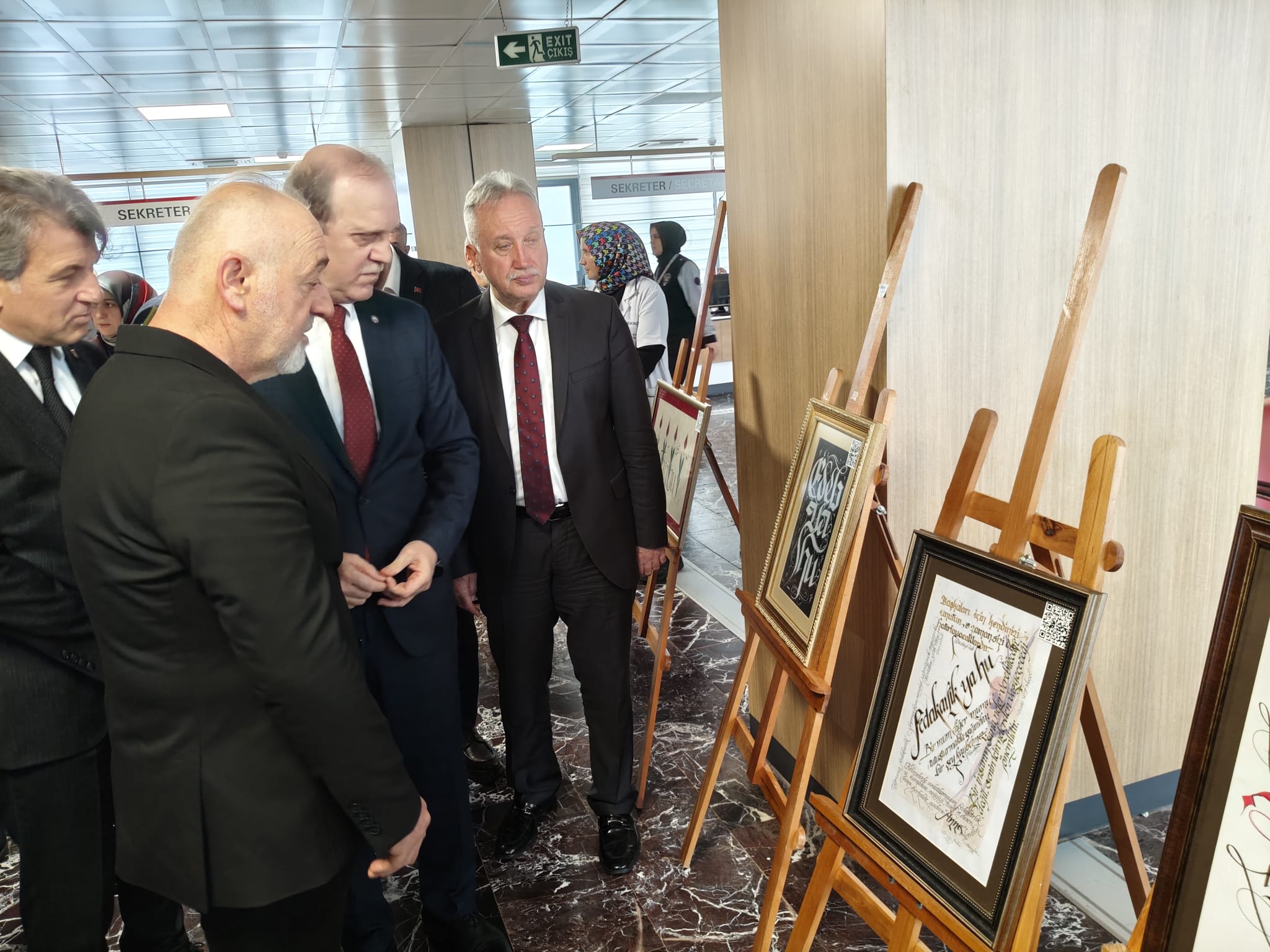 KTÜ Rektörü Prof. Dr. Celal Tekinbaş, “Hat çok önemli sanat. Meşhur hattatlarımız var. Güzel bir sanat. Sabır istiyor. Çok zahmetli. İnce bir sanat. Sade yazmıyor. Manası da var. Esmaü'l Hüsna, ayeti kerimeler, güzel sözler yazılıyor. Farabi Hastanemizde bu etkinlikler çok oluyor. Hastaneyi sanatla buluşturuyorlar. Gözümüzle görüyoruz kelimeler de kalbimize işliyor” ifadesine yer verdi.