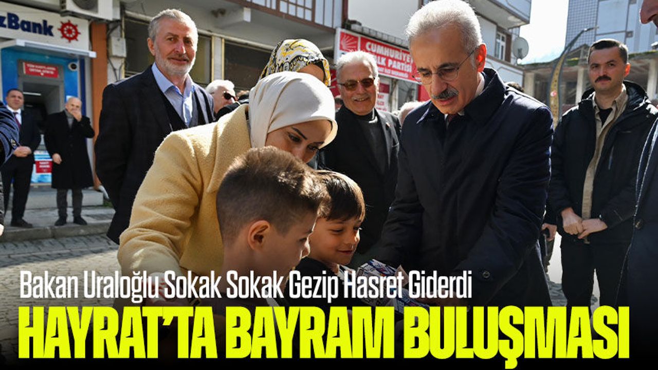 Hayrat’ta çarşı esnafını ziyaret eden Bakan Uraloğlu, dükkanları tek tek gezerek hayırlı işler temennisinde bulundu. Esnafın yoğun ilgisiyle karşılanan Uraloğlu, vatandaşlarla sohbet ederek onların beklenti ve taleplerini dinledi. Ziyaret sırasında oluşan samimi atmosfer, bayramın birlik ve beraberlik ruhunu yansıttı.