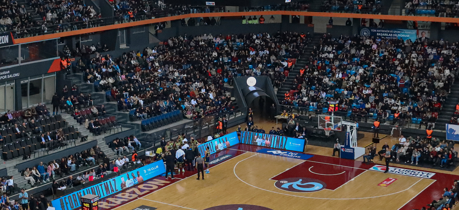 Trabzonspor Basketbol Takımı’nın Fenerbahçe Beko ile oynadığı müsabakaya taraftarlar damga vurdu. Müsabakada Hayri Gür Spor Salonunu tamamen dolduran Bordo-Mavili taraftarlar büyük bir coşkuyla takımı destekledi.