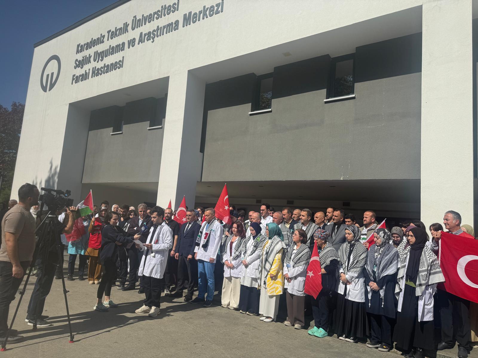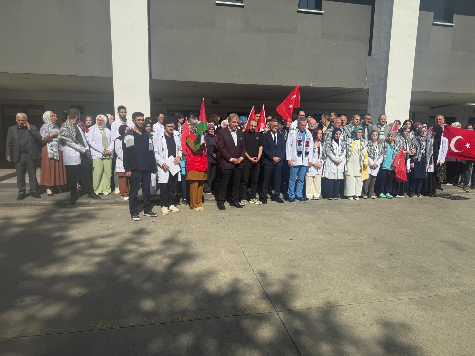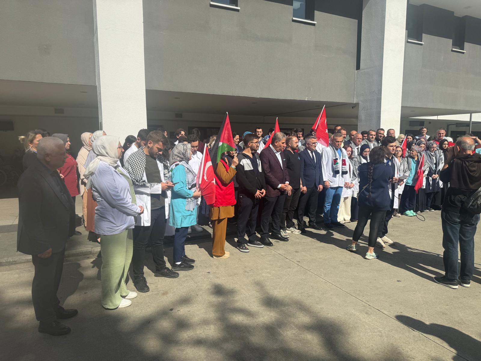 Katılımcılar, İsrail’in sürdürdüğü işgal politikası nedeniyle Gazze halkının en temel insani ihtiyaçlardan mahrum bırakıldığını, sağlık çalışanlarının hedef alındığını ve sivillerin sistematik şekilde öldürüldüğünü dile getirdi.