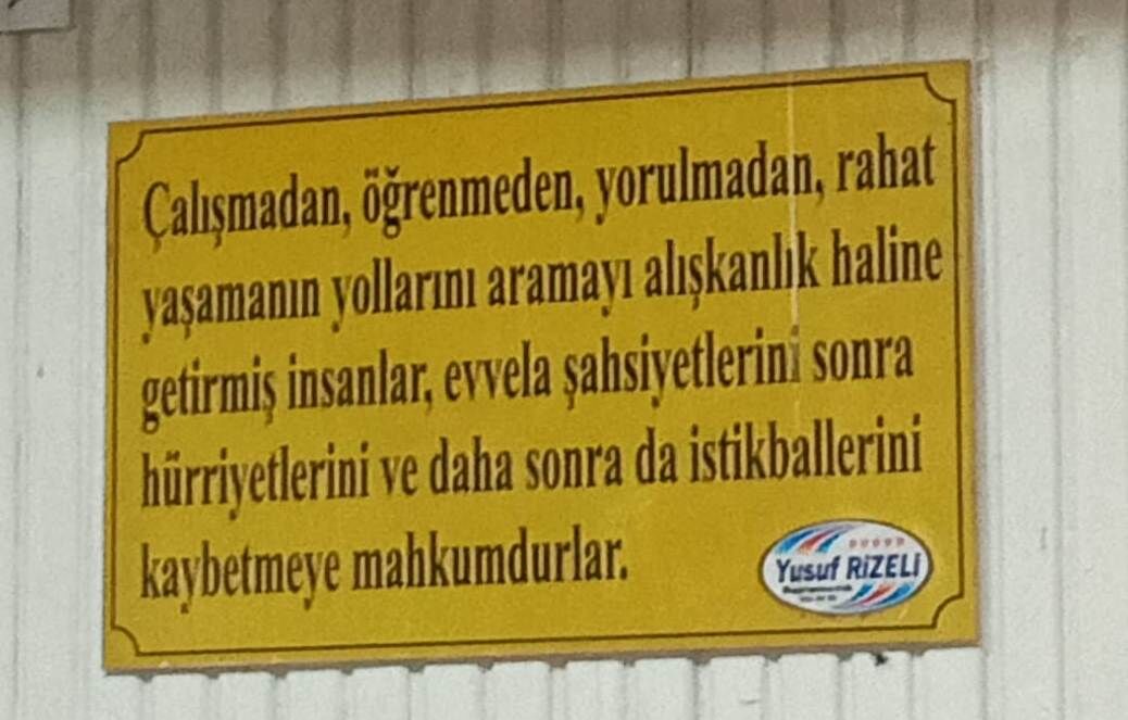 Günün sözü Yusuf Rizeli’nin Zeytinlik yokuşundaki Reklam-Baskı merkezinden Oğlu Makine Mühendisi sevgili Ersin’le sohbet ederken gözüm duvara gitti. Bu söz o kadar güzel ki: