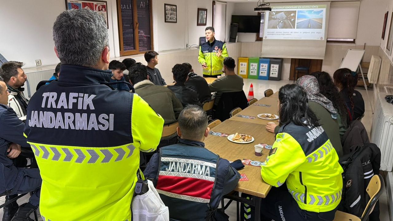 Trafik Jandarması ekiplerince verilen eğitimde, güvenli sürüşün temel kuralları ile kazaların önlenmesine yönelik kritik konular ele alındı.