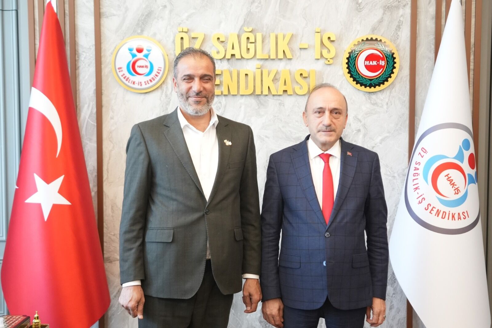 Ankara’da sendikal hareketlilik, sınırları aşan bir iş birliğiyle yeni bir boyut kazandı. Öz Sağlık-İş Sendikası Genel Başkanı Devlet Sert, Türkiye’ye çalışma ziyareti gerçekleştiren Suriye İşçi Sendikaları Federasyonu (GFTU) Genel Başkanı Fawaz Al-Ahmad ve beraberindeki heyeti sendika genel merkezinde ağırladı. "İki Kardeş Ülke, Ortak Gelecek" temasıyla gerçekleşen görüşmede, sağlık ve sosyal hizmetler iş kolundaki sendikal mücadeleler masaya yatırıldı. Kadim bir geçmişe ve ortak değerlere sahip olan iki ülkenin sendikal temsilcileri, karşılıklı bilgi ve tecrübe aktarımında bulunarak stratejik iş birliği mesajı verdiler. Genel Başkan Devlet Sert, ziyaretin önemine ilişkin yaptığı değerlendirmede şu ifadeleri kullandı: "Kadim bir geçmişi ve ortak değerleri paylaştığımız Suriye İşçi Sendikaları Federasyonu ile iş birliği içerisinde olmaktan büyük memnuniyet duyuyoruz. Sayın Fawaz Al-Ahmad ve heyetine nazik ziyaretleri için teşekkür ediyorum."