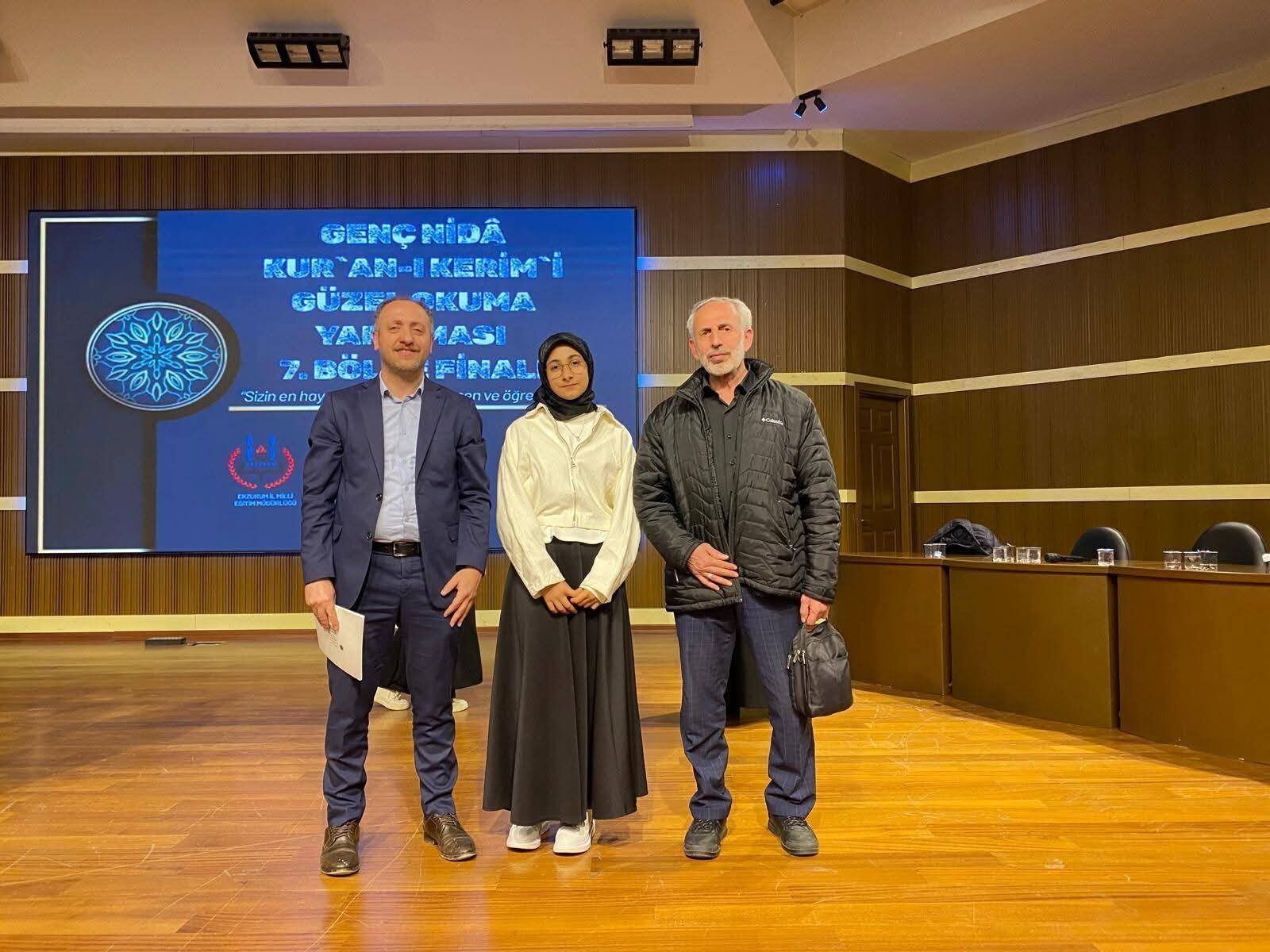 Trabzon, Kur’an-ı Kerim tilavetindeki başarısını bir kez daha bölge sahnesine taşıdı. Çaykara Akdoğan Soğanlı Kız Kur’an Kursu’nun başarılı öğrencisi Zeynep Saçaklı, katıldığı yarışmalardan aldığı derecelerle hem ilçesinin hem de şehrimizin göğsünü kabarttı. Geçtiğimiz haftalarda ortaokullar arası düzenlenen Kur’an-ı Kerim’i Güzel Okuma Yarışması’nda sergilediği performansla Trabzon İl Birincisi olan Saçaklı, bu başarısıyla Karadeniz Bölge Finali’ne katılmaya hak kazanmıştı. Karadeniz’in birçok ilinden gelen yetenekli öğrencilerin yarıştığı bölge finalinde de sesinin güzelliği ve tecvid hakimiyetiyle dikkatleri üzerine çeken genç hafız adayı, Karadeniz Bölge 3.’sü olarak kürsüdeki yerini aldı.
