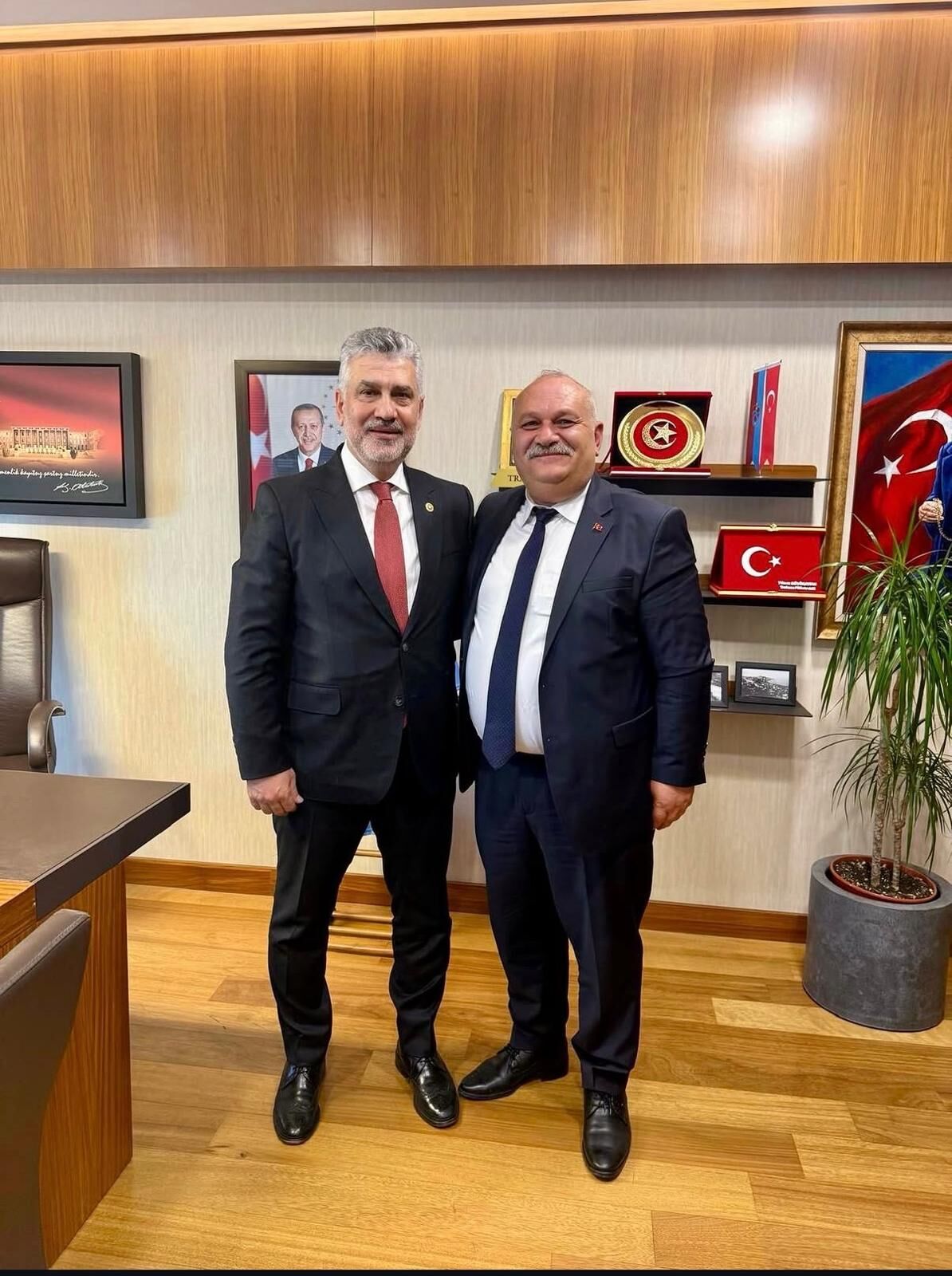 İYİ Parti Akçaabat İlçe Başkanı Av. Furkan Yetim TTSO yönetim kurulu üyesi Cesur Gerigelmez’i ziyaret ederek son ekonomik durumla ilgili görüş alışverişinde bulundu. İlçe başkanı Av. Yetim Gerigelmez’e Türk bayrağı rozeti takdim etti.