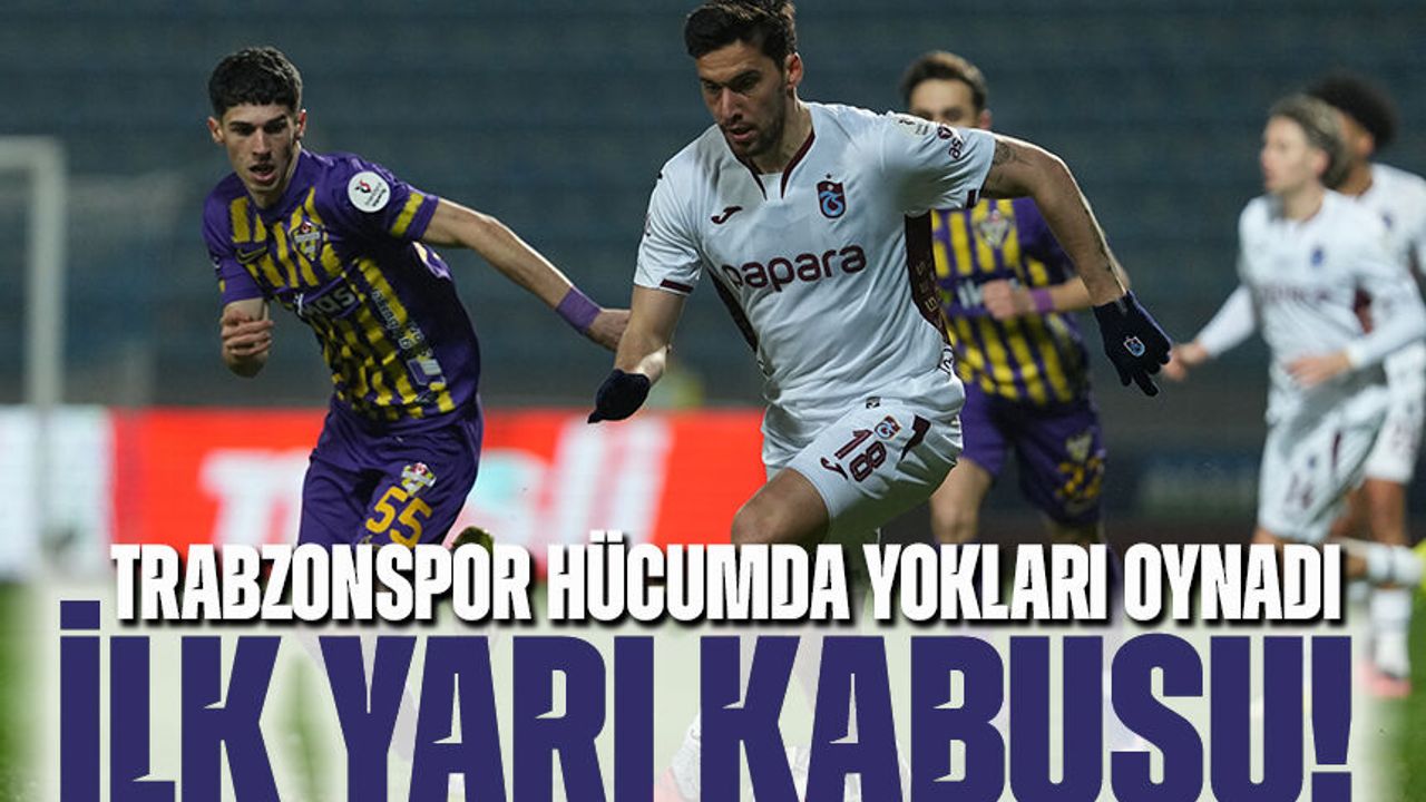 Eyüpspor ile deplasmanda karşı karşıya gelen Trabzonspor’da ilk yarı adeta boşa gitti. İlk yarıda ev sahibi ekip karşısında üretkenlikten oldukça uzak olan Bordo-Mavili takım, hücumda etkisiz bir görüntü sergiledi. Rakip kaleye inmekte zorlanmayan ancak hem orta hem pas hem de son vuruşlarda çok etkisiz kalan Trabzonspor, soyunma odasına golsüz eşitlikle gitmek zorunda kaldı.