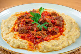 Eti suyunu salıp çekene kadar kavur. Soğan ve salça ekleyip pişir. Ayrı tavada tereyağı + un kavur. Süt ekleyip beşamel yap. Patlıcanı ekle, karıştır. Tabağa beğendi, üstüne et koy.