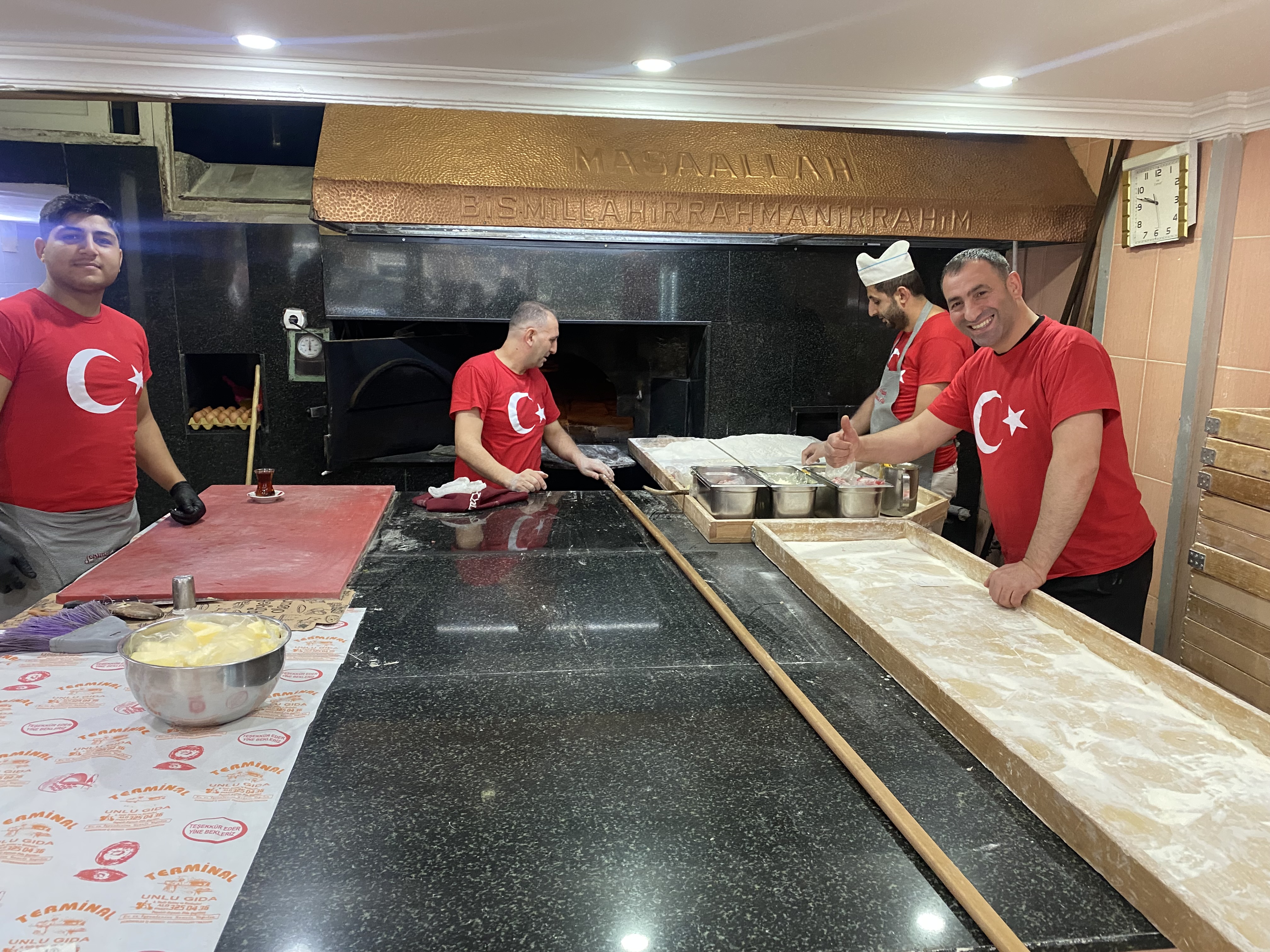 Terminal Pide’de İlhan Bektaş ekibi ile birlikte Türk Bayraklı tişört ile hizmet verip, gelenlere de bayrak hediye etmesi seçti.