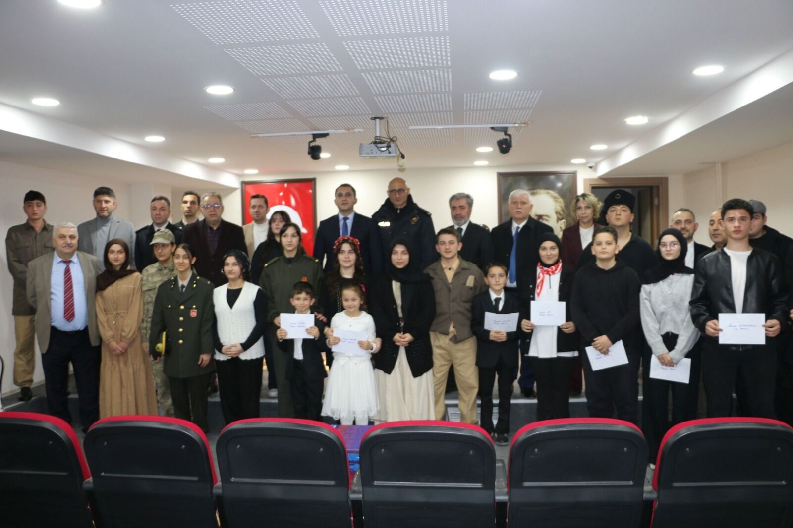 Etkinlik kapsamında ilçede geleneksel olarak düzenlenen İstiklal Marşı’nı güzel okuma yarışmasında dereceye giren öğrenciler de sahne alarak İstiklal Marşı’nı okudu.