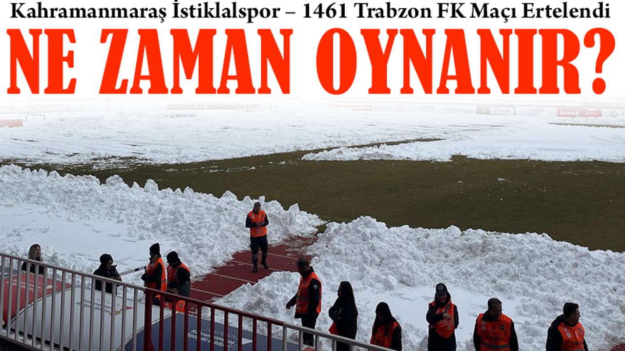 Ertelenen karşılaşmanın ne zaman oynanacağına ilişkin nihai karar Türkiye Futbol Federasyonu tarafından verilecek. Konuyla ilgili KCT 1461 Trabzon FK tarafından yapılan açıklamada, “Kahramanmaraş İstiklal Spor ile oynanması planlanan karşılaşma, müsabaka hakemleri tarafından yapılan saha ve koşul kontrollerinin ardından iptal edilmiştir. Karşılaşmaya ilişkin nihai karar Türkiye Futbol Federasyonu tarafından verilecektir. Gelişmeler doğrultusunda kamuoyu bilgilendirilecektir” ifadelerine yer verildi.