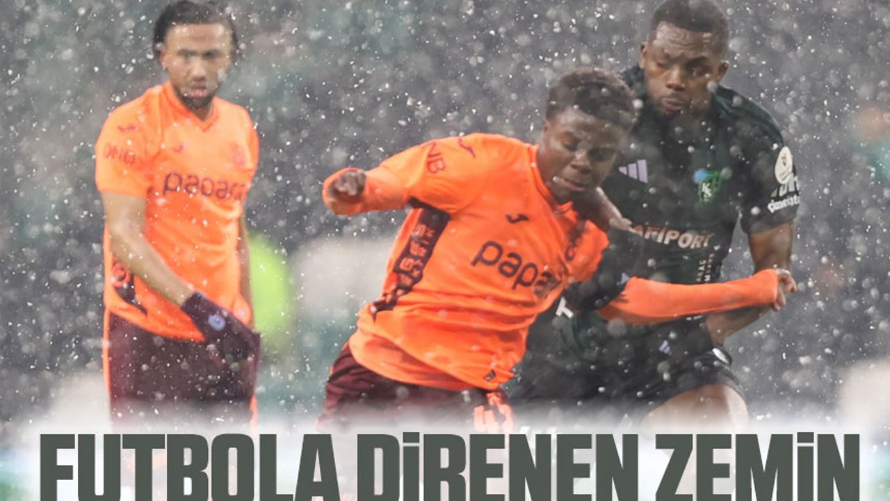Trendyol Süper Lig’de ikinci yarının ilk maçında deplasmanda Kocaelispor ile karşı karşıya gelen Trabzonspor, zorlu hava ve saha koşullarıyla mücadele etti. Karşılaşmanın oynandığı Kocaeli Stadyumu’nda gün boyunca etkili olan yoğun yağmur, maç saatine doğru yerini karla karışık yağmura bıraktı. Olumsuz hava şartları, saha zeminini adeta futbol oynamaya elverişsiz hale getirdi. Özellikle ilk yarıda ıslak ve ağırlaşan zemin, oyuncuların ayakta durmasını bile zorlaştırdı. Yer yer oluşan su birikintileri nedeniyle futbolcular sık sık kayma tehlikesi yaşarken, pas yapmak ve top kontrolü sağlamak neredeyse imkânsız hale geldi. Islak zeminde hız kazanan ve yön değiştiren meşin yuvarlak, oyuncular için büyük bir sorun oluşturdu. Karşılaşma boyunca hem Trabzonspor hem de Kocaelisporlu futbolcular, top sürerken ve ikili mücadelelerde ciddi zorluklar yaşadı.