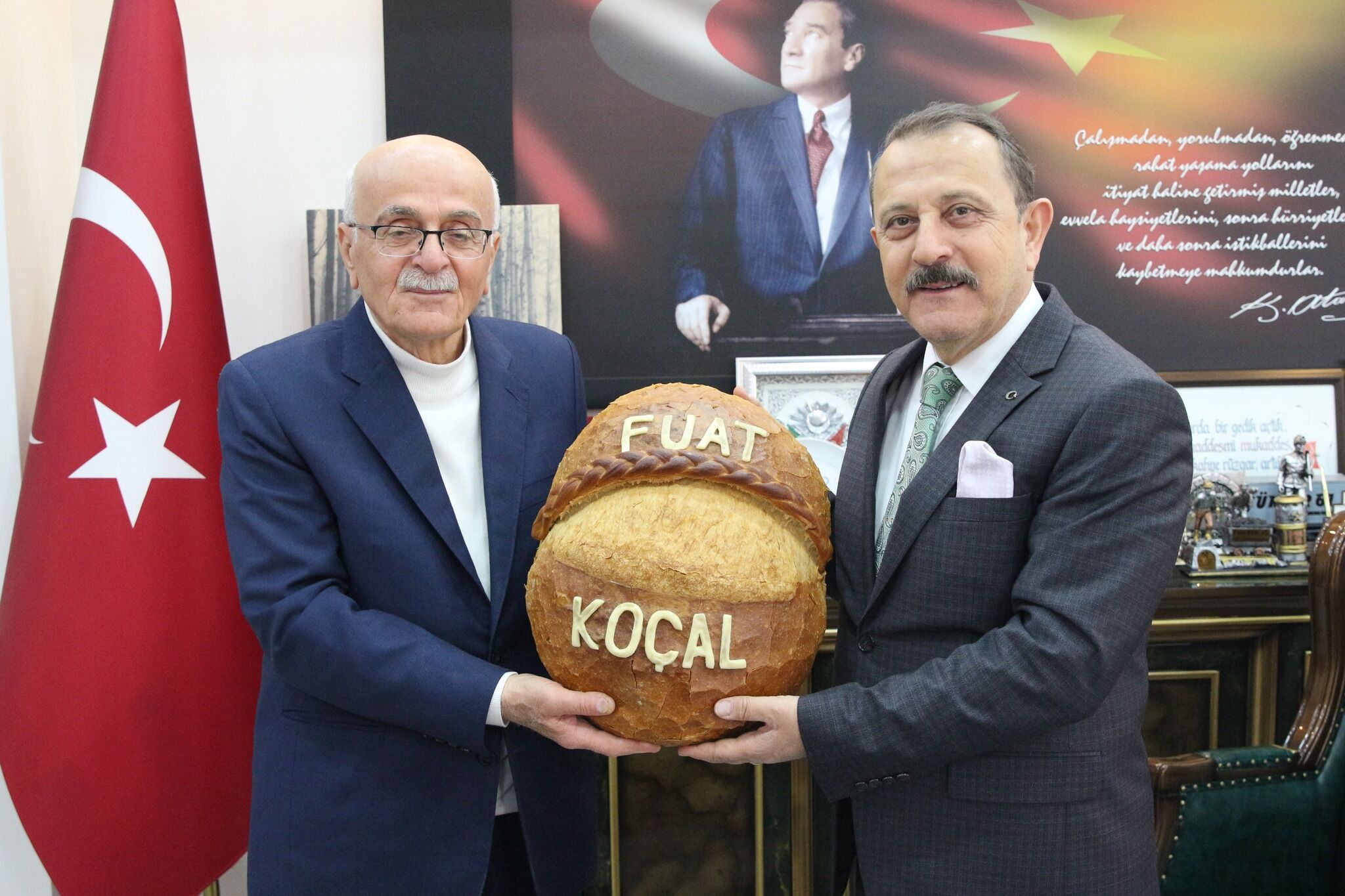 Trabzon siyasetinin nabzı, bazen en samimi karelerde atar. Geçtiğimiz günlerde Vakfıkebir Belediye Başkanlığı makamında tam da böyle, "bizden" diyebileceğimiz bir enstantane yaşandı. Yaylacık Mahallesi’nin sevilen simalarından Ergin Güven, Belediye Başkanı Fuat Koçal’ı ziyaret etti. Ancak bu ziyaret, alışılagelmiş bir "hayırlı olsun" turundan fazlasıydı. Ergin Güven, elinde Vakfıkebir’in dünyaca ünlü tescilli lezzetiyle girdi içeri. Üzerinde Başkan Fuat Koçal’ın isminin nakşedildiği o devasa Vakfıkebir Ekmeği, aslında ilçedeki hizmetlerin halk nezdindeki karşılığını simgeliyordu. Kulislerde konuşulan şu: Başkan Koçal’ın göreve geldiği günden bu yana sürdürdüğü "kapısı açık belediyecilik" anlayışı, mahalle sakinlerinde karşılık bulmuş durumda. Güven’in bu ziyareti ve teşekkürleri, Vakfıkebir’deki hizmet heyecanının sokakta ne denli diri olduğunun bir göstergesi.