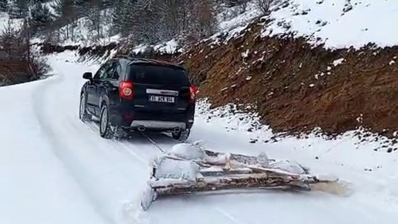 Gümüşhane'nin Torul ilçesine bağlı Cebeli köyünde kar yağışının ardından köylülerin yollarını açmak için geliştirdiği yöntem büyük takdir topladı.