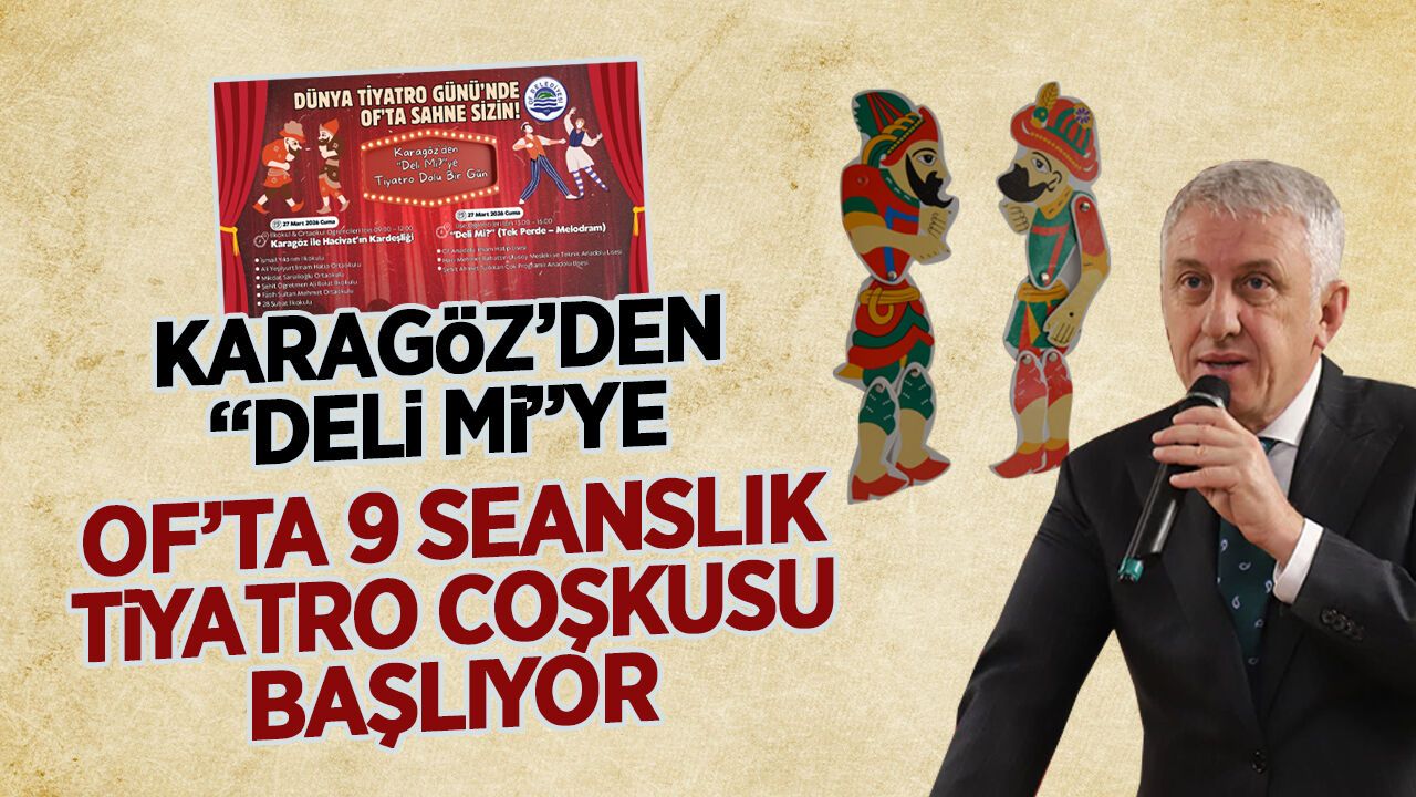 "Of Belediyemiz olarak öğrencilerimize anlamlı bir tiyatro etkinliği sunuyoruz. 27 Mart Dünya Tiyatro Günü coşkusunu ilçemizde hep birlikte yaşayacağız. Kültür ve sanatla büyüyen nesiller için öğrencilerimizi tiyatro ile buluşturuyoruz. Karagöz’den ‘Deli Mi?’ye uzanan bu özel programla sanat dolu bir gün sizleri bekliyor. Tiyatro heyecanı Of’ta yaşanacak."