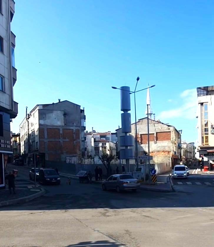 Fatih Mahallesinin girişine koca bir direk dikmişler, tam 6 yolun köşesine.
