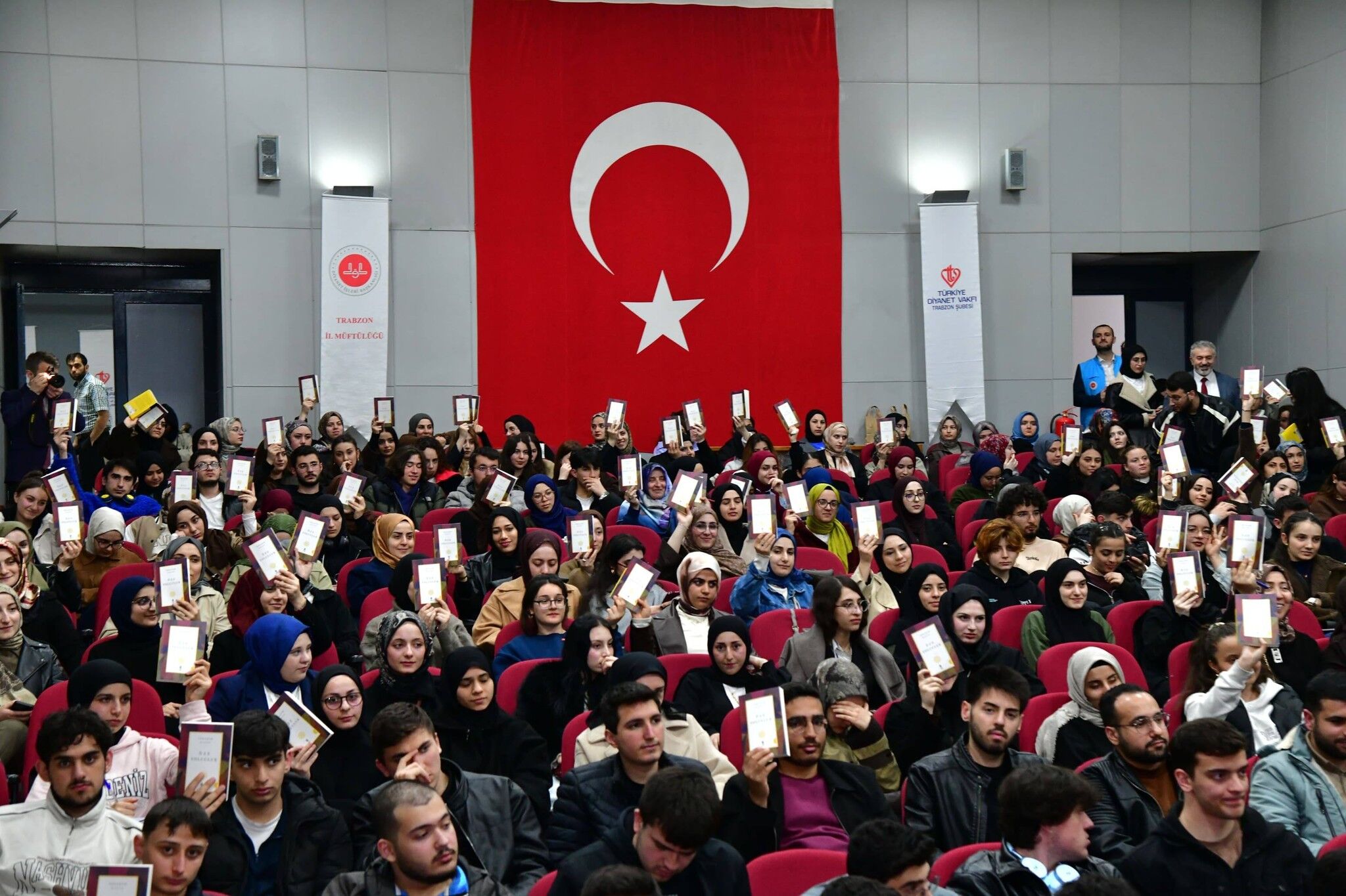 Trabzon İl Müftülüğü’nün gençlerin fikri gelişimine katkı sunmak amacıyla başarıyla sürdürdüğü OKU-Yorum Kitap Tahlilleri programı, bu hafta çok özel bir konuğu ağırladı. Trabzon Valisi Sayın Tahir Şahin, beraberinde getirdiği 300 kitaplık anlamlı bağışla programa iştirak ederek, eğitime ve gençliğe verdiği önemi bir kez daha gözler önüne serdi.