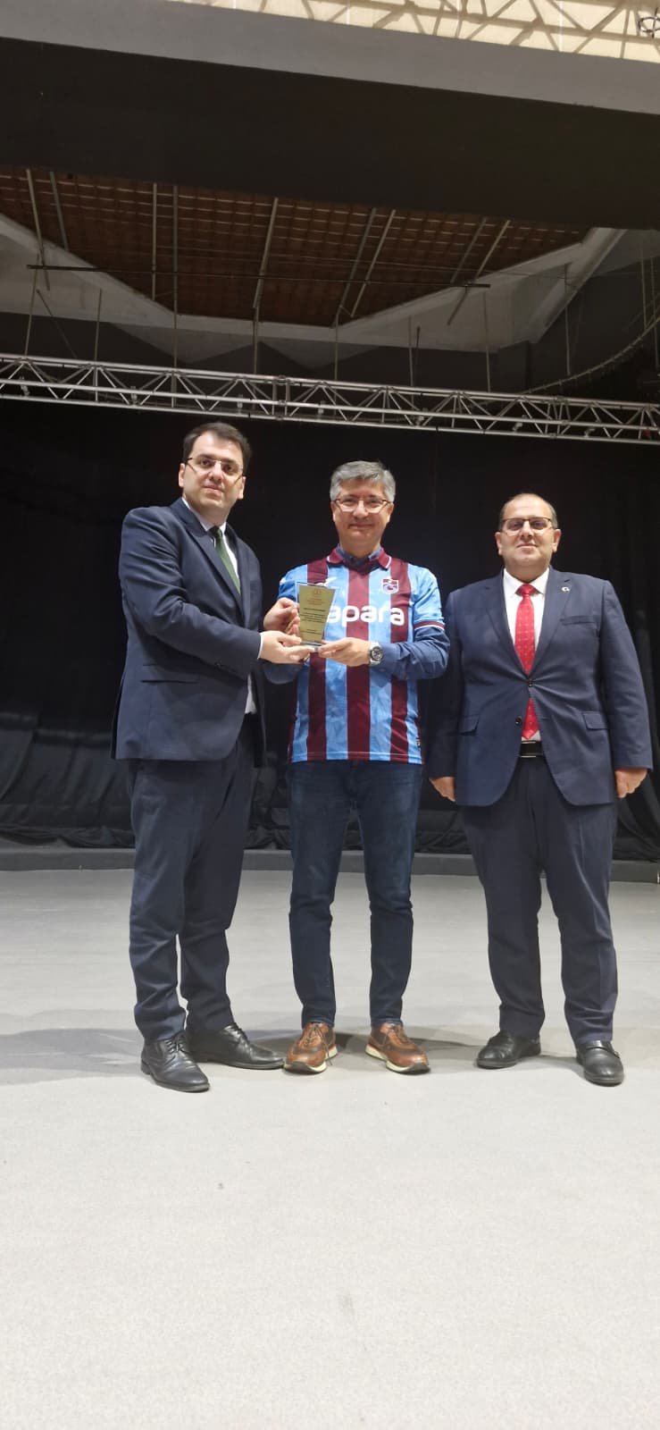 Program sonunda, Dr. Ömer Faruk Öndağ’a katkılarından ötürü bir plaket takdim edilirken, Trabzon’un simgesi olan bordo-mavi renklerde bir Trabzonspor forması da hediye edildi. Bu jest, salonda büyük alkış topladı.