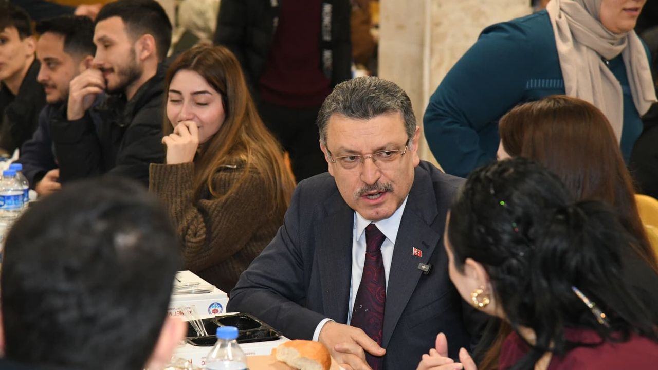 Trabzon Büyükşehir Belediye Başkanı Ahmet Metin Genç, Karadeniz Teknik Üniversitesi’nde düzenlenen iftar programında üniversite öğrencileriyle aynı sofrayı paylaştı. Trabzon Büyükşehir Belediye Başkanı Ahmet Metin Genç, her gün bin 500 öğrenciye iftar verilen Karadeniz Teknik Üniversitesi'nde öğrencilerle birlikte oruç açtı.