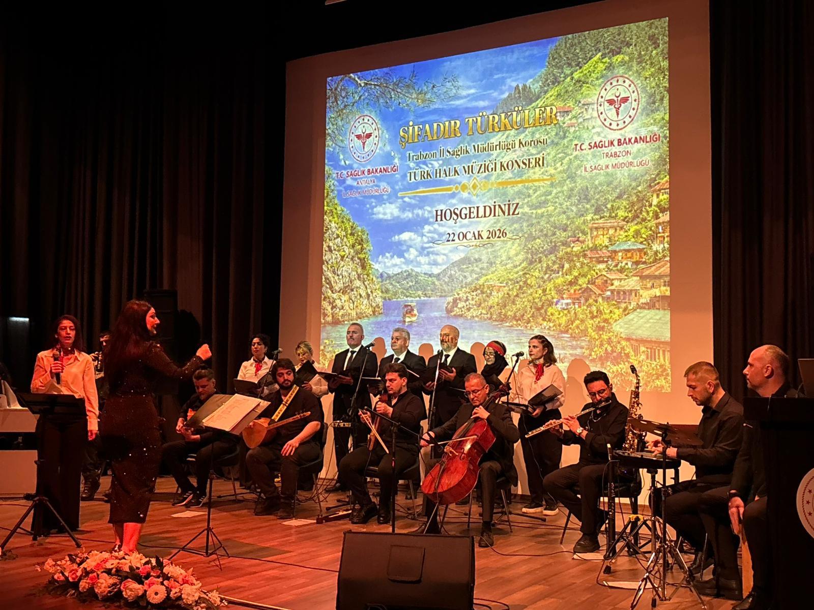 22 Ocak 2026 tarihinde Antalya Eğitim ve Araştırma Hastanesi’nde gerçekleşen özel konser, Trabzon İl Sağlık Müdürlüğü Şifadır Türküler Türk Halk Müziği Korosu tarafından düzenlendi. Antalya İl Sağlık Müdürlüğü’nün ev sahipliğinde gerçekleşen bu anlamlı etkinlikte, sağlık çalışanlarının moral ve motivasyonuna katkı sunmak amacıyla zengin bir Türk Halk Müziği repertuvarı sahneye taşındı.