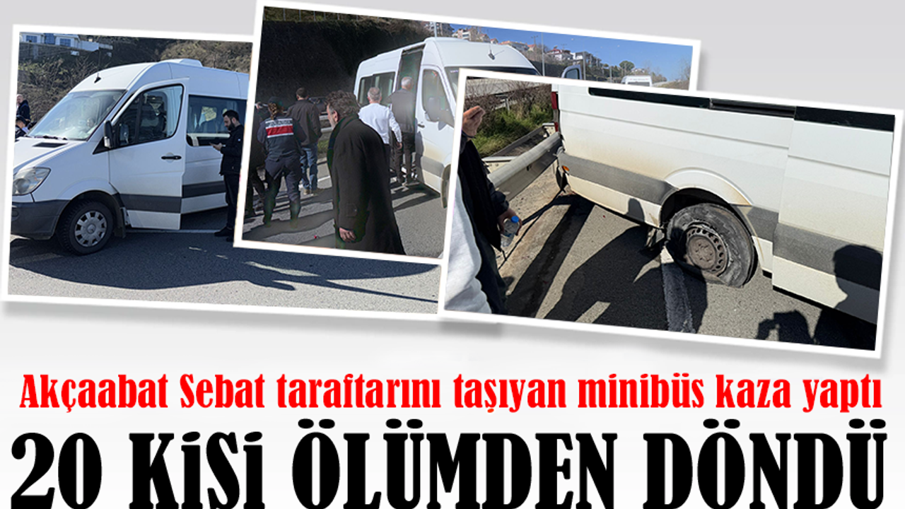 TFF 3’üncü Lig’de oynanacak Akçaabat Sebat Gençlik – Orduspor 52 maçı için yola çıkan taraftarları taşıyan minibüs, Giresun’un Bulancak ilçesinde kaza yaptı. Lastiği patlayan araç refüje çarparak durabildi. Kazada can kaybı yaşanmazken, araçta bulunan 20 kişi büyük tehlike atlattı.