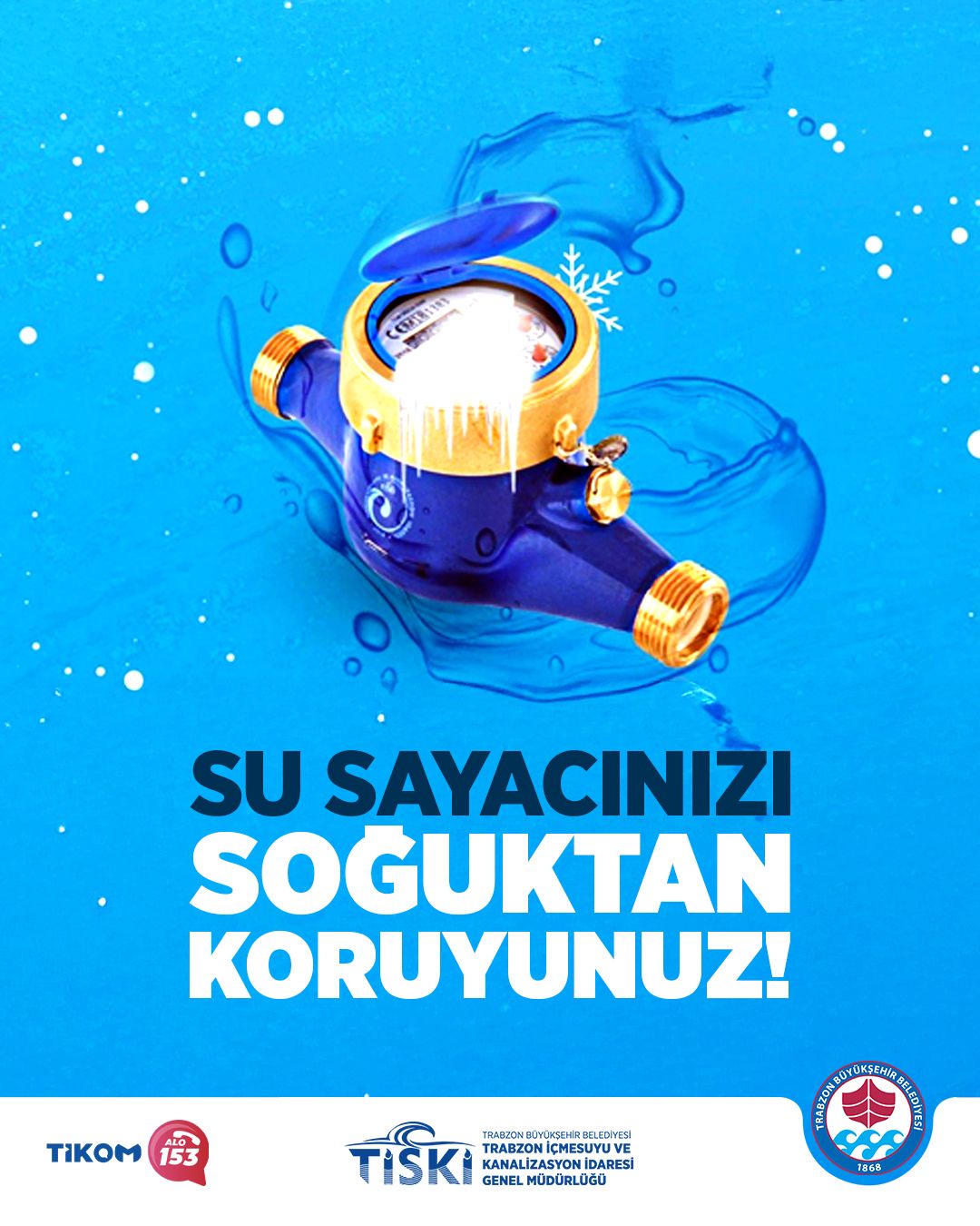 Trabzon Büyükşehir Belediyesi TİSKİ Genel Müdürlüğü, soğuk havalarda su sayaçlarının donma tehlikesine karşı abonelerini uyardı. Trabzon genelinde hava sıcaklıkları ciddi şekilde düşerken üst kotlarda kar yağışı etkili oluyor. Önümüzdeki günlerde de kar yağışı ve soğuk havanın etkili olması beklenirken, Trabzon Büyükşehir Belediyesi TİSKİ Genel Müdürlüğü su sayaçları ve tesisatlarının donma tehlikesine karşı vatandaşları uyardı.