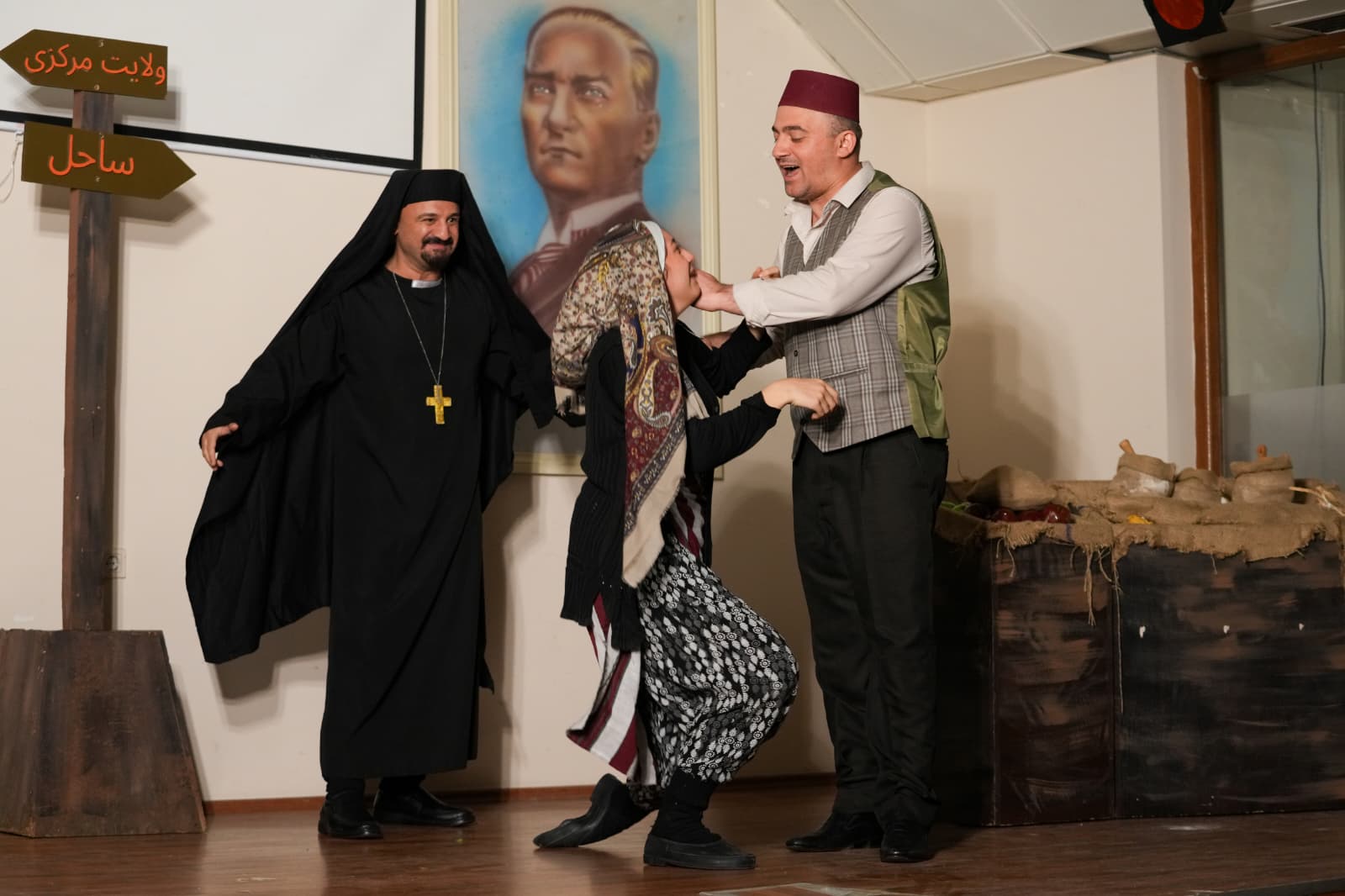 Trabzon Büyükşehir Belediyesi Şehir Tiyatrosu, “Trabzon’un Kayıp Yılları: Muhacirlik” adlı oyunuyla ilçe turnesine hız kesmeden devam ediyor. Çaykara, Of, Sürmene, Yomra ve Maçka’da sahnelenen oyun şimdi de batı ilçelerinde tiyatroseverlerle buluşuyor. 11 Ocak’ta Vakfıkebir’de sabah ve akşam olmak üzere iki seans halinde sahnelenen oyun, dün de Çarşıbaşı ilçesinde izleyiciyle buluştu. Çarşıbaşı Şehit İsmail Çavuş İmam Hatip Lisesi’nde sahne alan tiyatro ekibi, başarılı performanslarıyla seyircilerden tam not aldı. Muhacirlik sürecinde yaşanan ayrılıkları, yoksulluğu, hastalıkları ve kayıpları; geride bırakılan hayatların hüznünü etkileyici bir anlatımla sahneye taşıyan oyun, izleyicilere duygu dolu anlar yaşatıyor.