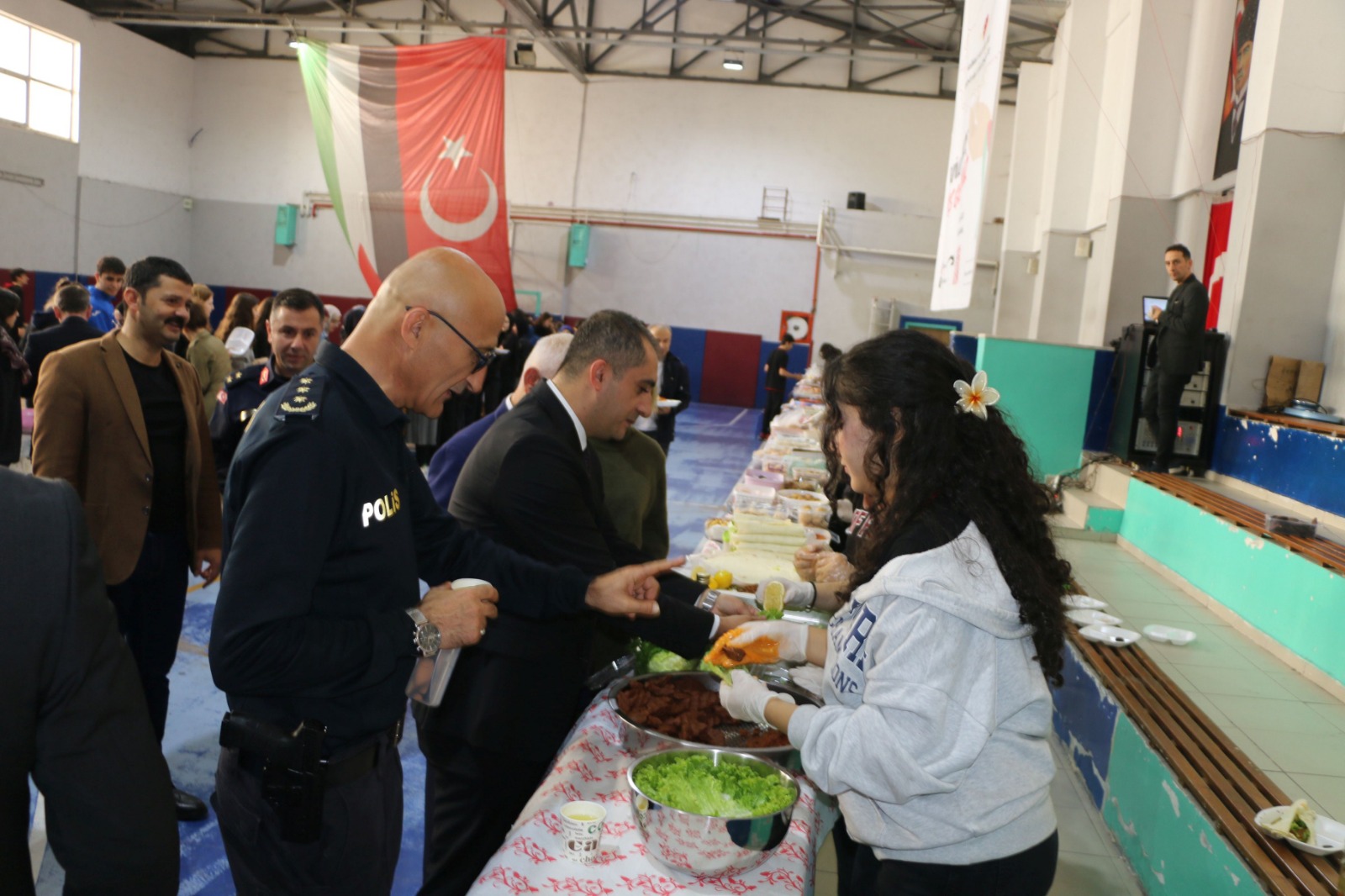 Okulun spor salonunda kurulan kermes alanında velilerin hazırladığı yiyecekler, içecekler ve çeşitli ikramlıklar ziyaretçilere sunuldu. Katılımcılar arasında İlçe Emniyet Müdürü Levent Durmaz, İlçe Jandarma Komutanı Kd. Üstağmen Servet Çelenk, İlçe Milli Eğitim Müdürü İdris Kabahasanoğlu, okul yöneticileri, öğretmenler ve çok sayıda öğrenci yer aldı. Yardım kermesi boyunca duygu dolu anlar yaşanırken, katılımcılar da bağışlarıyla destek verdi.