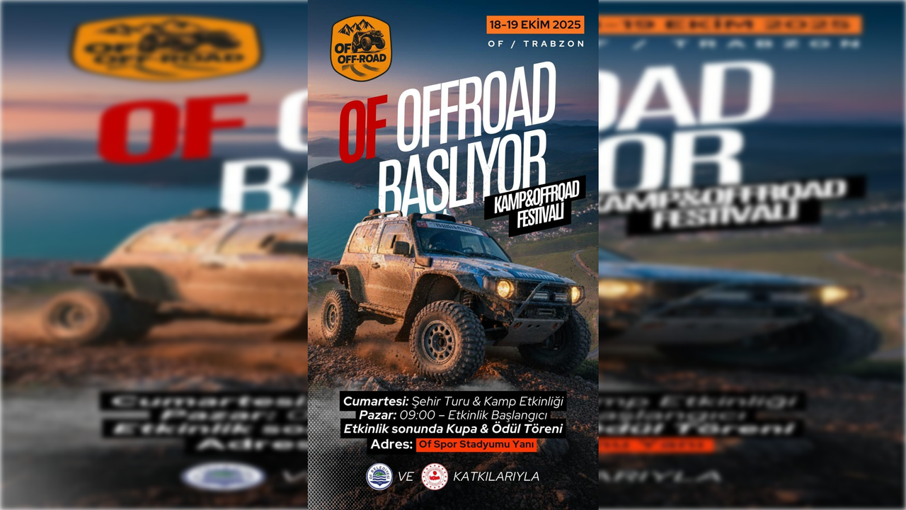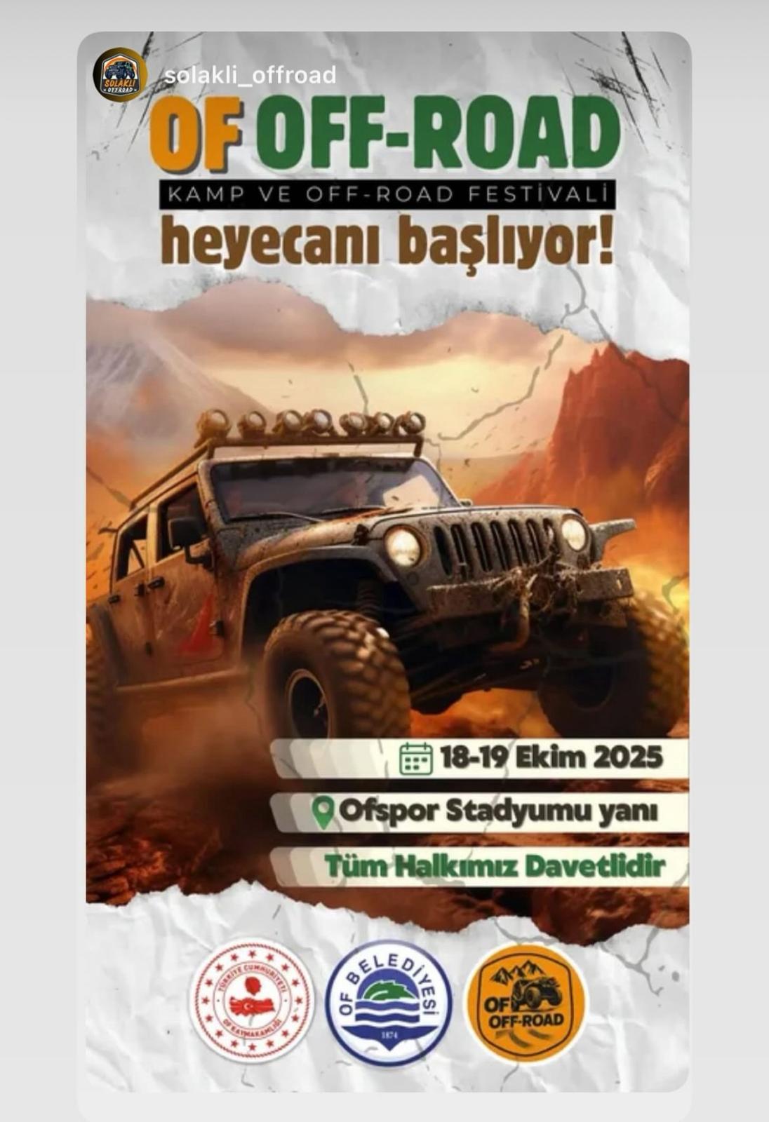 Trabzon’un Of ilçesi, 18-19 Ekim 2025 tarihlerinde heyecan dolu bir etkinliğe ev sahipliği yapacak. Of Offroad Derneği tarafından organize edilen Of Offroad Festivali, hem yerli hem yabancı offroad tutkunlarını bir araya getirecek. Festival, Of Stadyumu yanında düzenlenecek ve iki gün boyunca spor, doğa ve aksiyonun buluştuğu renkli anlara sahne olacak.