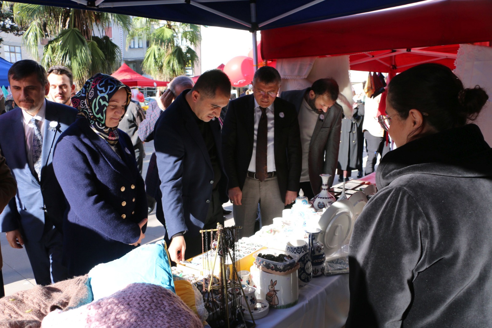 Serginin açılış kurdelesi, Of Kaymakamı Eşref Akça, Of Belediye Başkan Vekili Mehmet Öztürk ve diğer protokol üyeleri tarafından kesildi. Açılış konuşmasını yapan Kaymakam Akça, “Kadına yönelik şiddetin her türlüsüne karşıyız. Kadınlarımız toplumun temel direğidir. Bugün burada onların emeğine ve başarısına şahitlik ediyoruz,” diyerek emeği geçen herkese teşekkür etti. Açılışın ardından protokol üyeleri stantları gezerek kadınlardan bilgi aldı ve alışveriş yaptı.