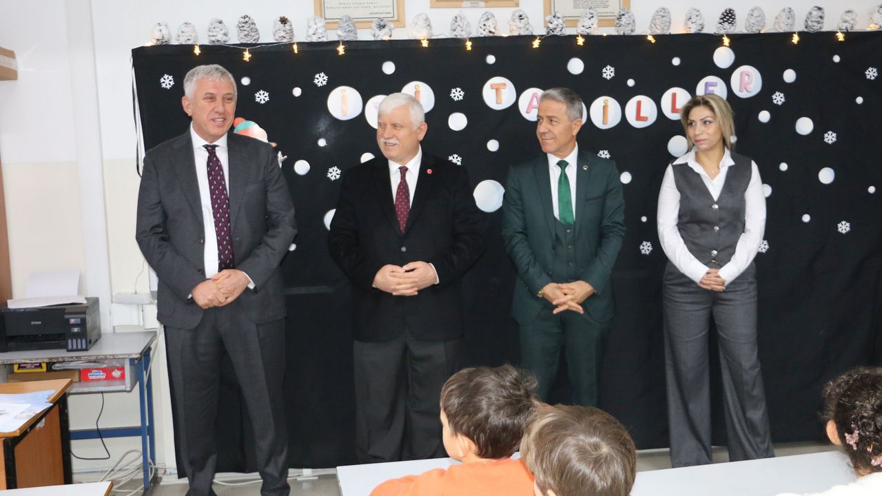 Sarıalioğlu ile Kabahasanoğlu, karnelerini verdikleri öğrencilerle sohbet ederek başarılar diledi.