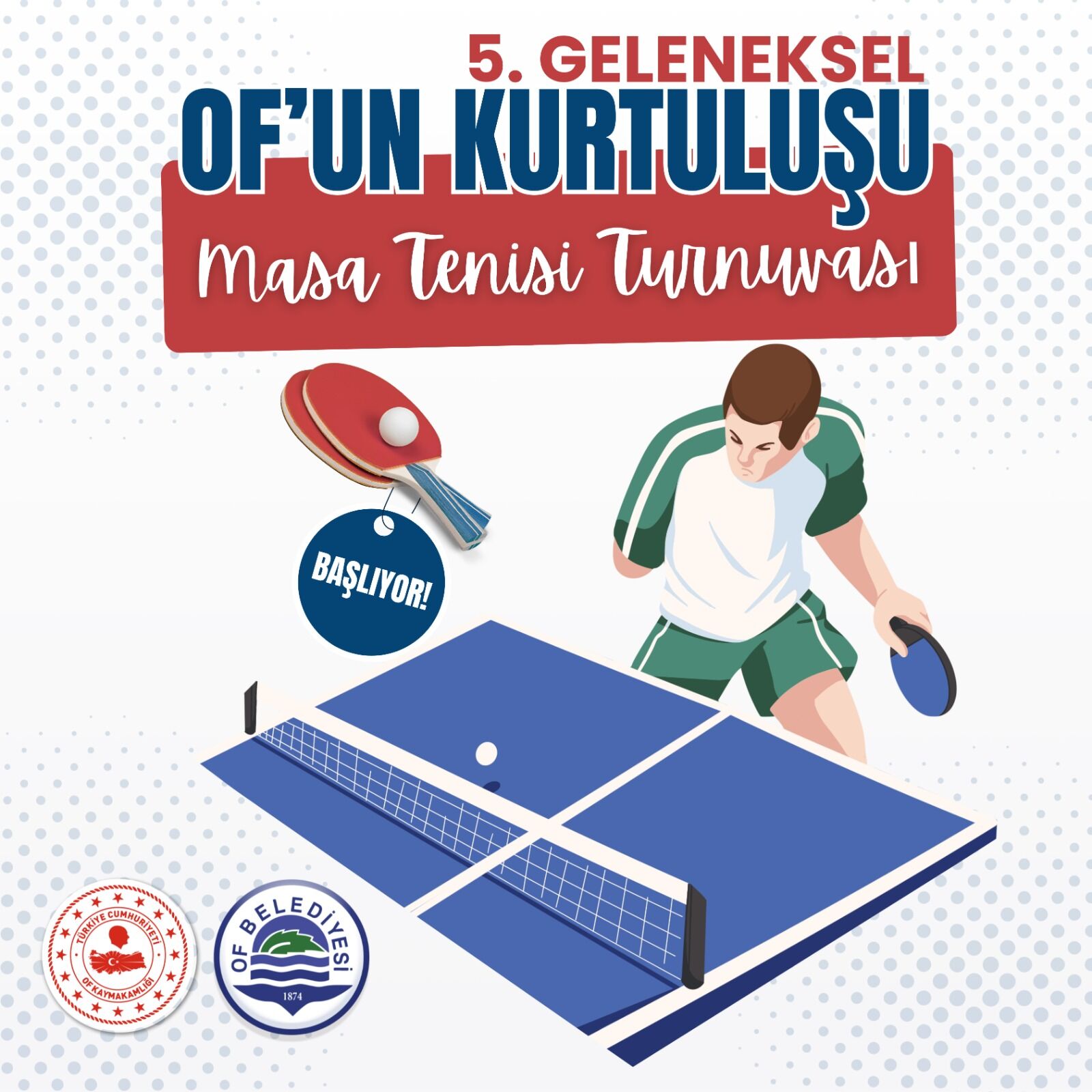 Trabzon’un Of ilçesinde spor heyecanı yeniden başlıyor. Of Kaymakamlığı ve Of Belediyesi iş birliğiyle düzenlenen Geleneksel Masa Tenisi Turnuvası, bu yıl beşinci kez sporcuları ve sporseverleri bir araya getirecek. 28-29 Mart tarihlerinde Of Kapalı Spor Salonu’nda gerçekleştirilecek turnuva, geniş katılımla iki gün boyunca sürecek. Farklı yaş kategorilerinde düzenlenecek müsabakalar ve toplam 61 bin TL ödül, organizasyona olan ilgiyi artırırken, ilçede spor kültürünün gelişimine de katkı sağlaması bekleniyor.