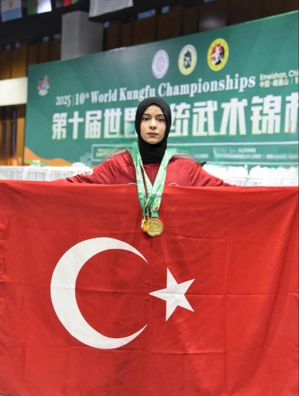 "14-20 Ekim 2025 tarihleri arasında Çin'in Emeishan şehrinde gerçekleştirilen 10. Dünya Kungfu Şampiyonası'nda, kıymetli hemşehrimiz Türk Milli Takım sporcumuz Ayşe Sude Akyüz, 3 kez Dünya Şampiyonu olarak bir kez daha hat-trick başarısı elde etti! Azmiyle, disipliniyle ve inancıyla göğsümüzü kabartan Sude kardeşimizi ve emeği geçen antrenörünü gönülden tebrik ediyoruz.