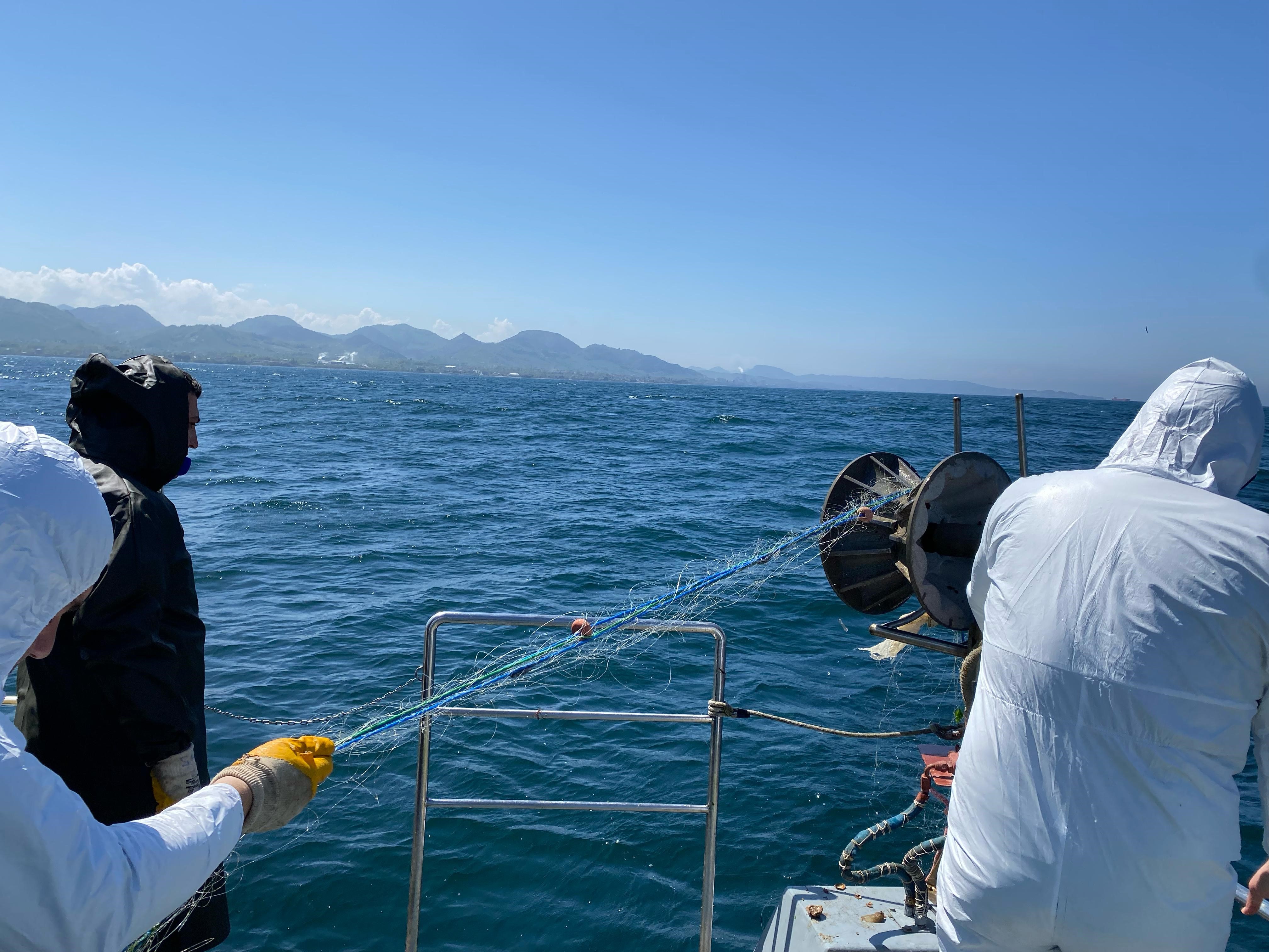 Denize serili halde bulunan ağ, ekipler tarafından toplanarak el konuldu.