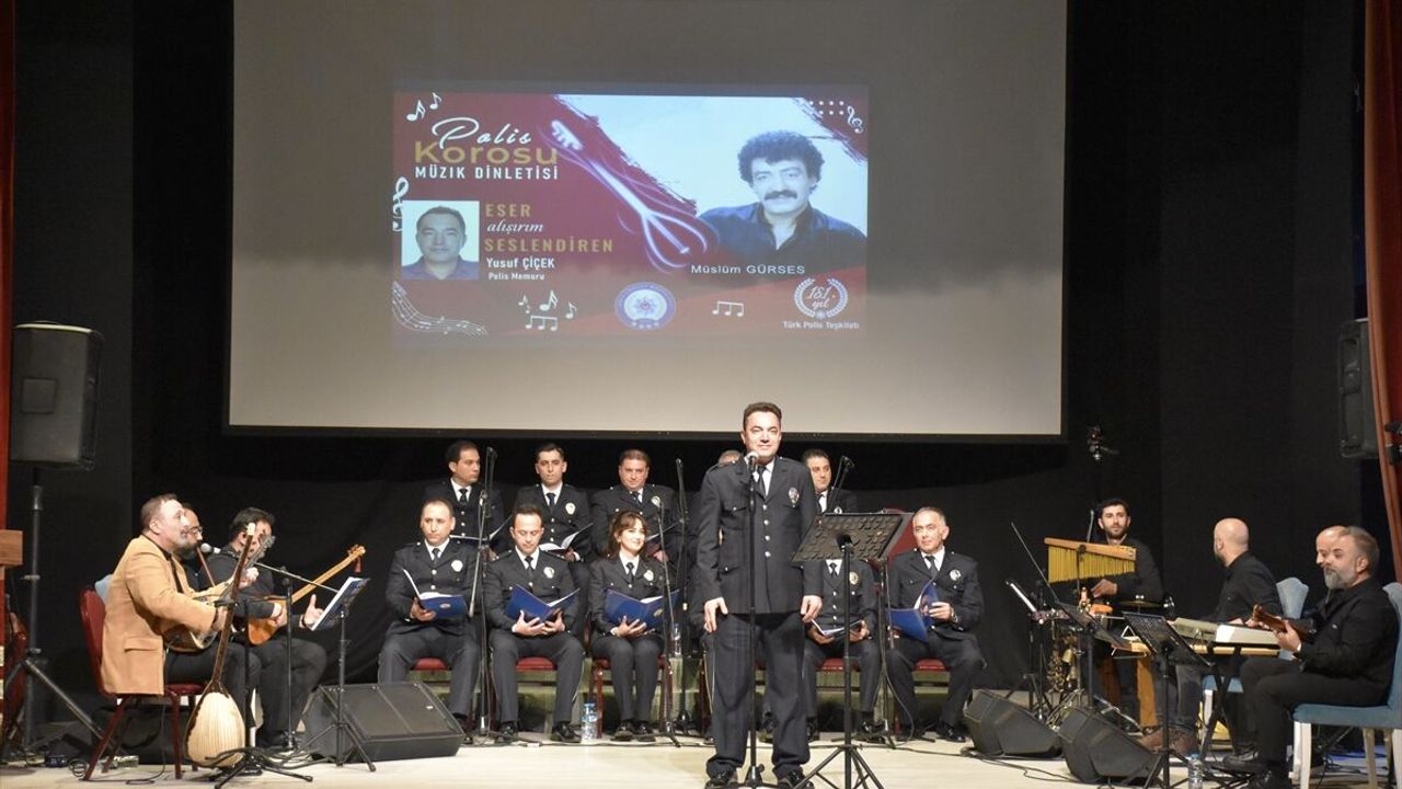 Şef Ata Bahri Çağlayan yönetiminde sahneye çıkan polis korosu, Türk müziğinin sevilen şarkı ve türkülerini seslendirdi.