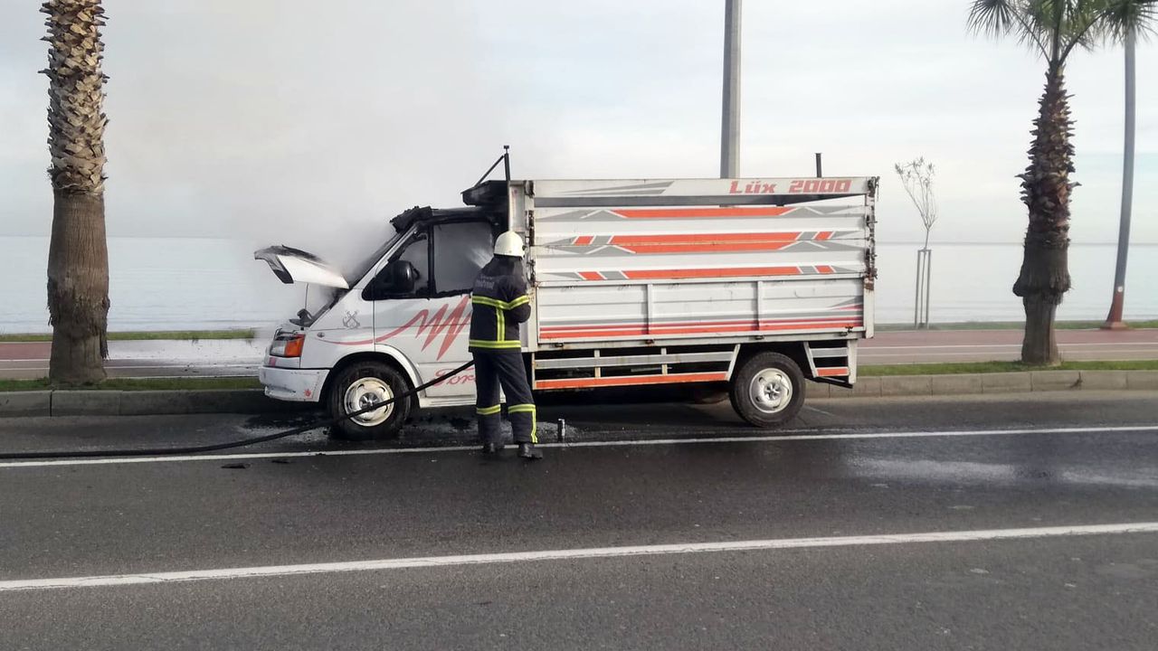 Olay yerine gelen itfaiye ekiplerinin müdahalesiyle söndürülen yangında kamyonet kullanılamaz hale geldi.