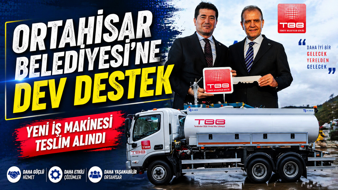 Ortahisar Belediyesi, hizmet kapasitesini güçlendirecek önemli bir desteği daha bünyesine kattı. Türkiye Belediyeler Birliği (TBB) tarafından belediyelere yönelik hibe edilen araçlar kapsamında Ortahisar Belediyesi’ne kazandırılan iş makinesi, Ankara’da düzenlenen törenle teslim edildi. Törene katılan Ortahisar Belediye Başkanı Ahmet Kaya, yapılan bu desteğin belediyenin sahadaki gücünü artıracağını vurgulayarak, katkı sunan tüm yetkililere teşekkür etti. Belediye hizmetlerinde hız ve verimliliği artırmayı hedefleyen bu adım, yerel yönetimlerin güçlendirilmesi açısından da dikkat çekiyor.