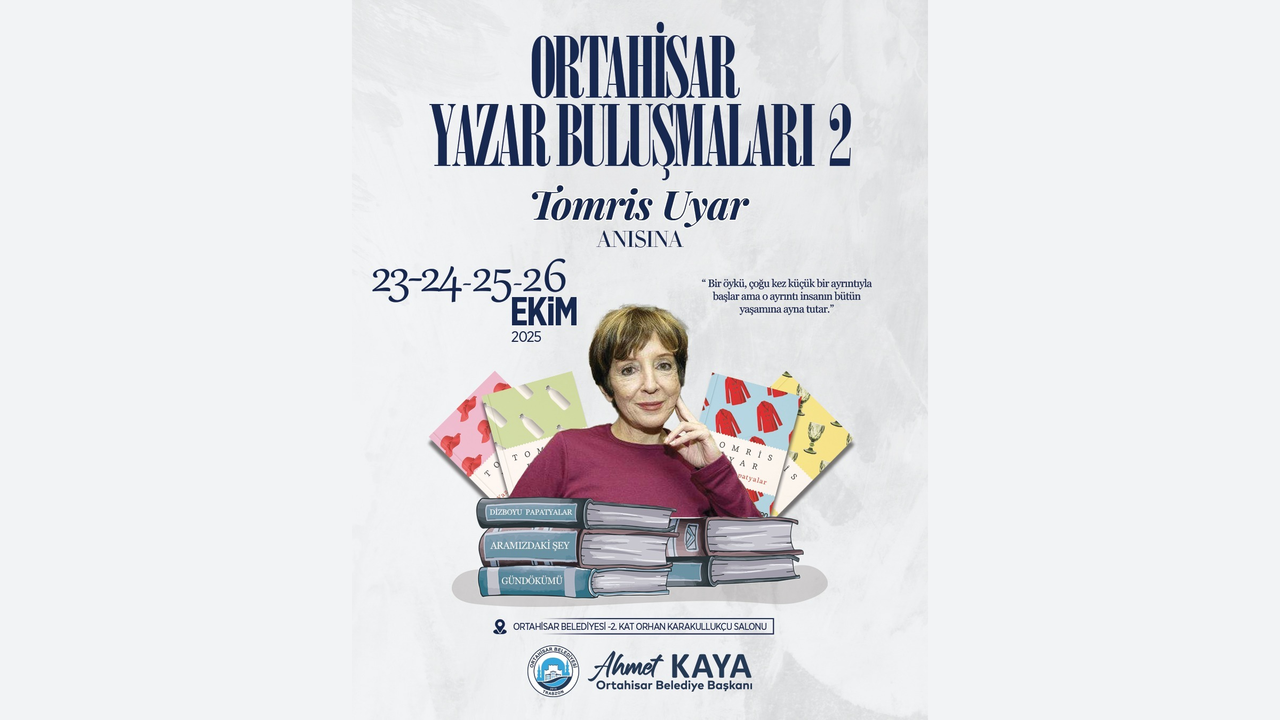 Ortahisar Belediyesi tarafından geçen yıl ilki gerçekleştirilen Ortahisar Yazar Buluşmaları, bu yıl 23-26 Ekim 2025 tarihleri arasında yeniden Trabzonlu kitapseverlerle buluşacak. Cumhuriyet Bayramı kutlamaları kapsamında düzenlenecek etkinlik, bu kez Türk edebiyatının usta ismi Tomris Uyar anısına gerçekleştirilecek. Ortahisar Belediye Başkanı Ahmet Kaya, “Birbirinden değerli 68 yazar ve edebiyatçıyı Trabzon’da ağırlayacak olmanın mutluluğunu yaşıyoruz,” diyerek, kenti edebiyatla buluşturacak bu önemli etkinliğin detaylarını paylaştı.
